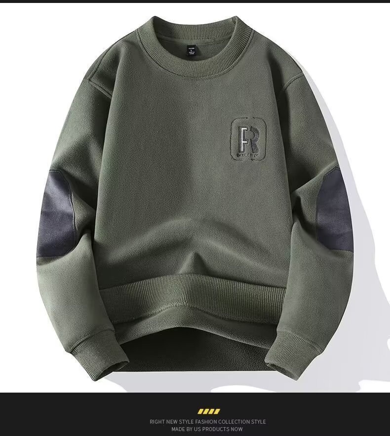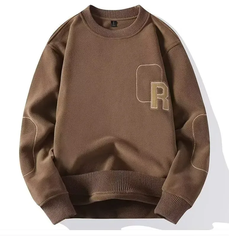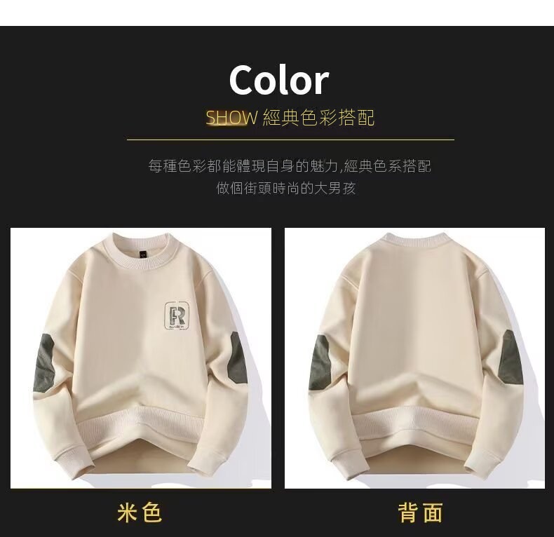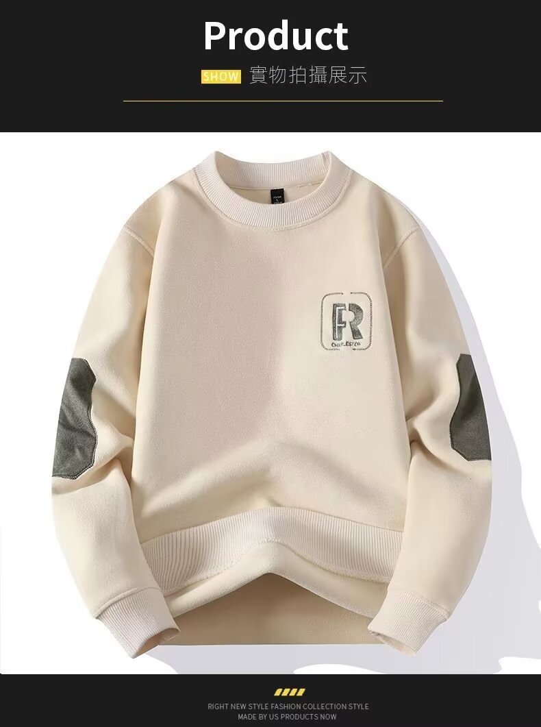 雙面奧粒絨加厚内搭字母圓領長袖T恤