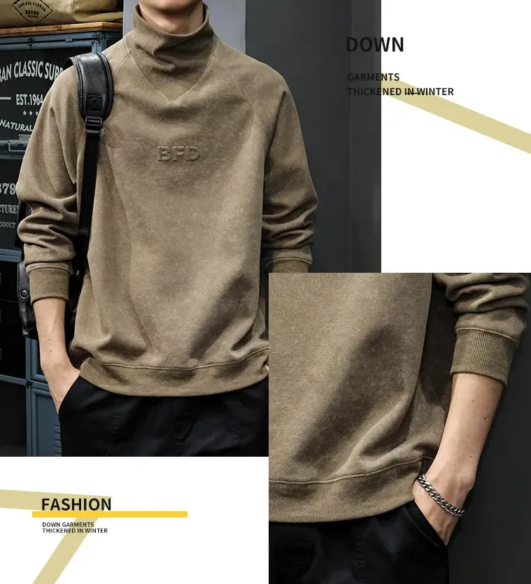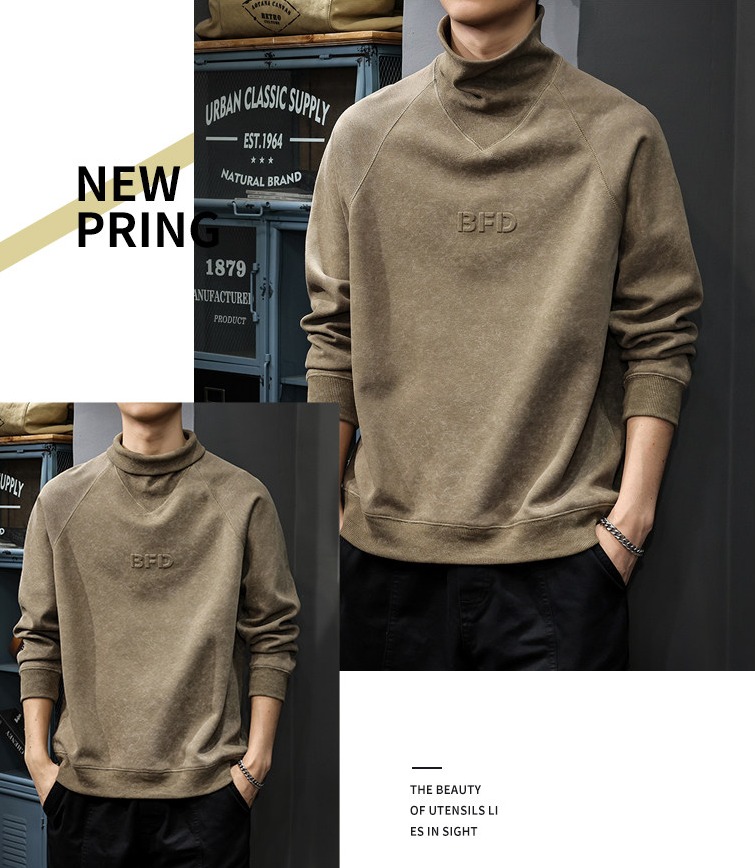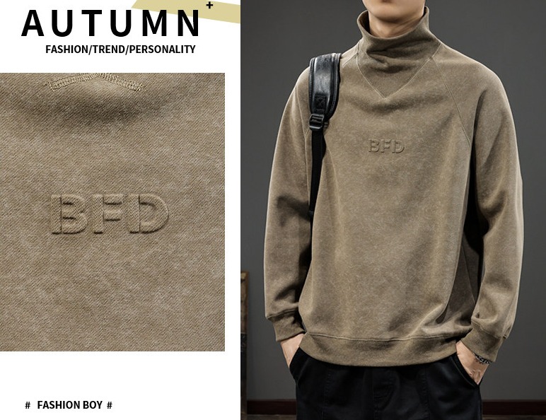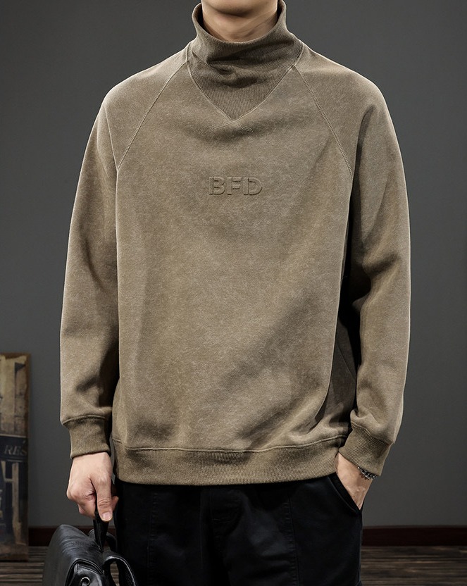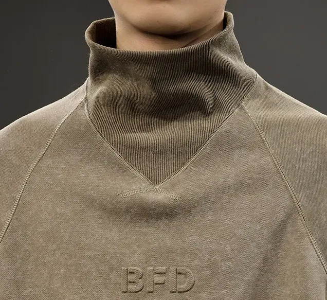 重磅大碼麂皮絨半高領扎染長袖T恤