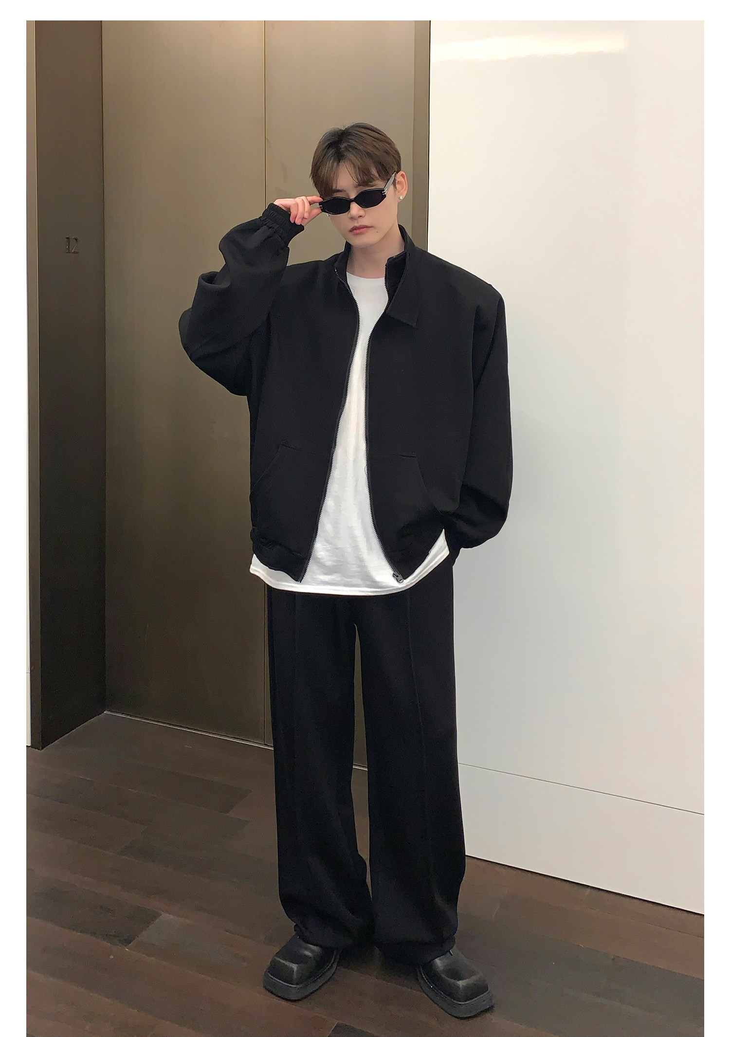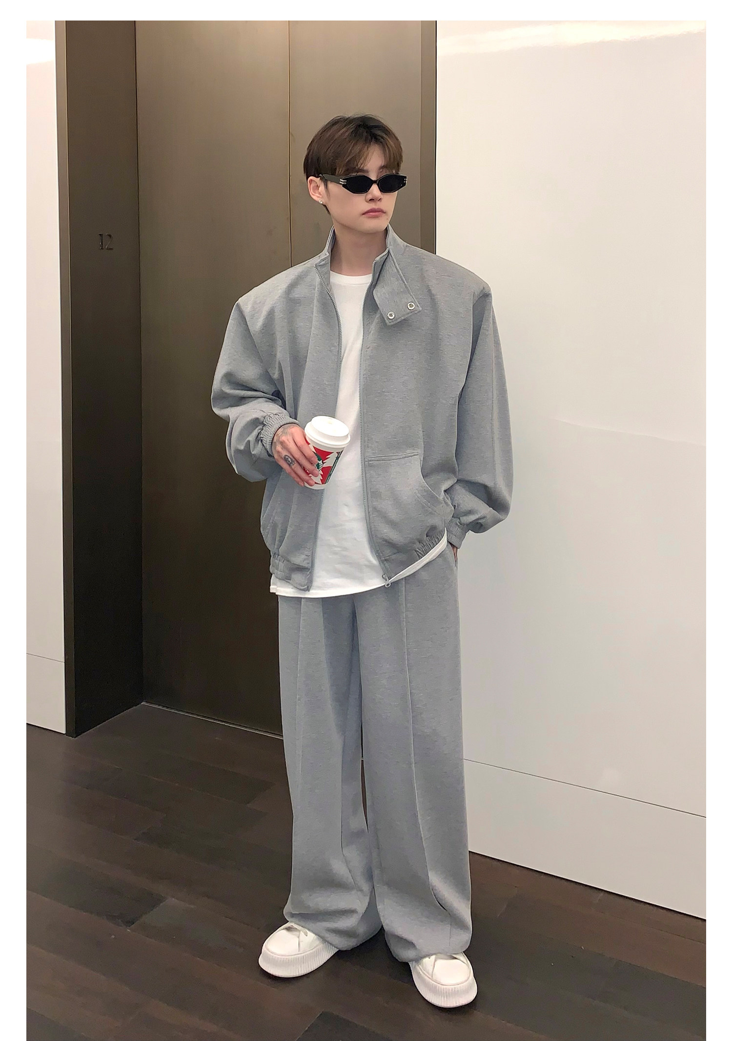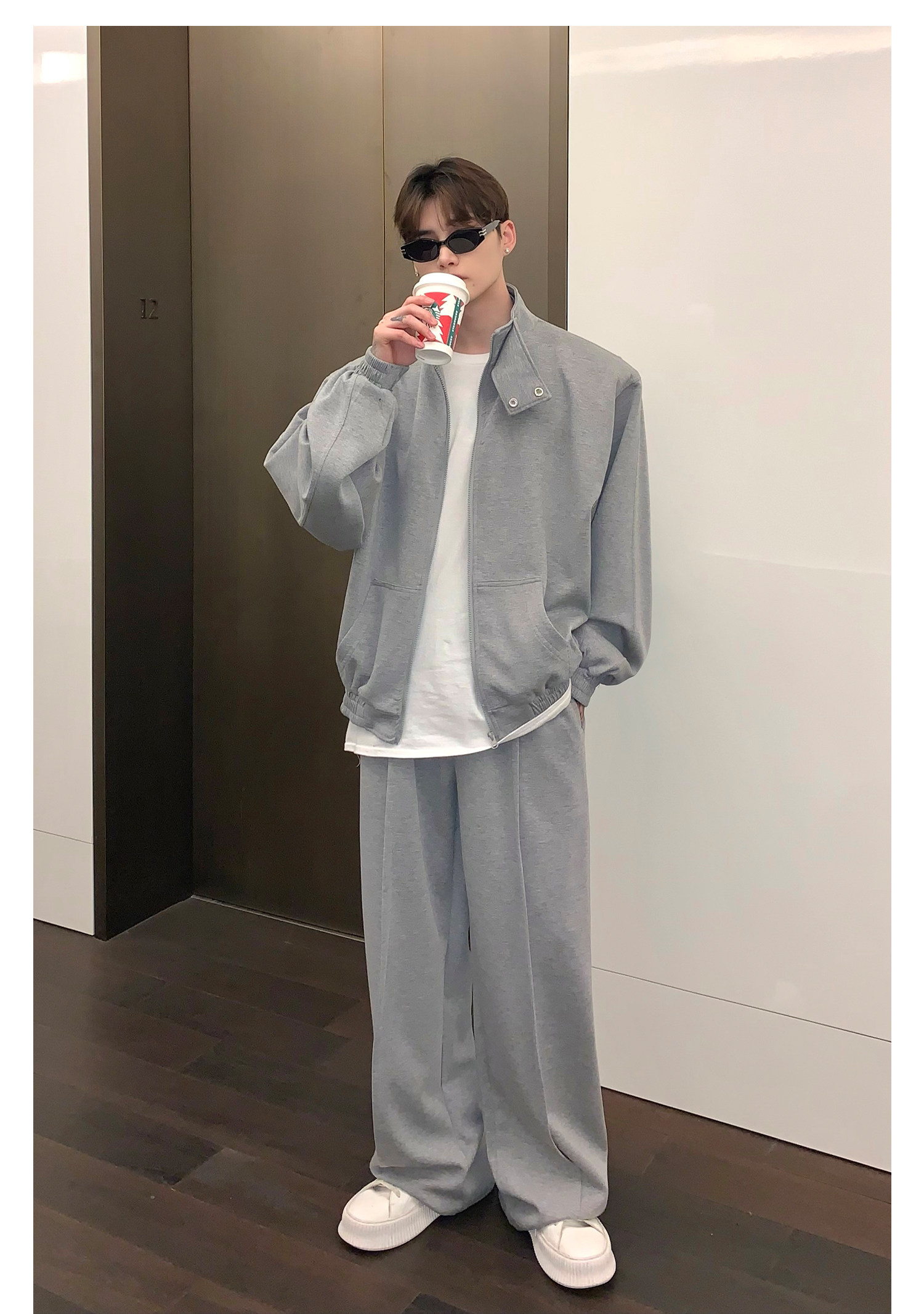 【整套】寬鬆立領開衫+運動休閒褲兩件套裝