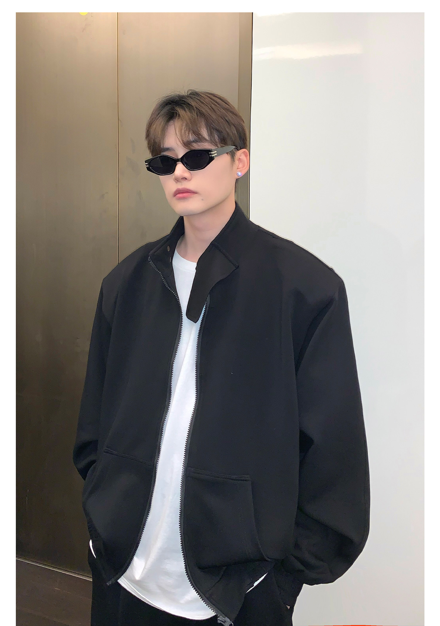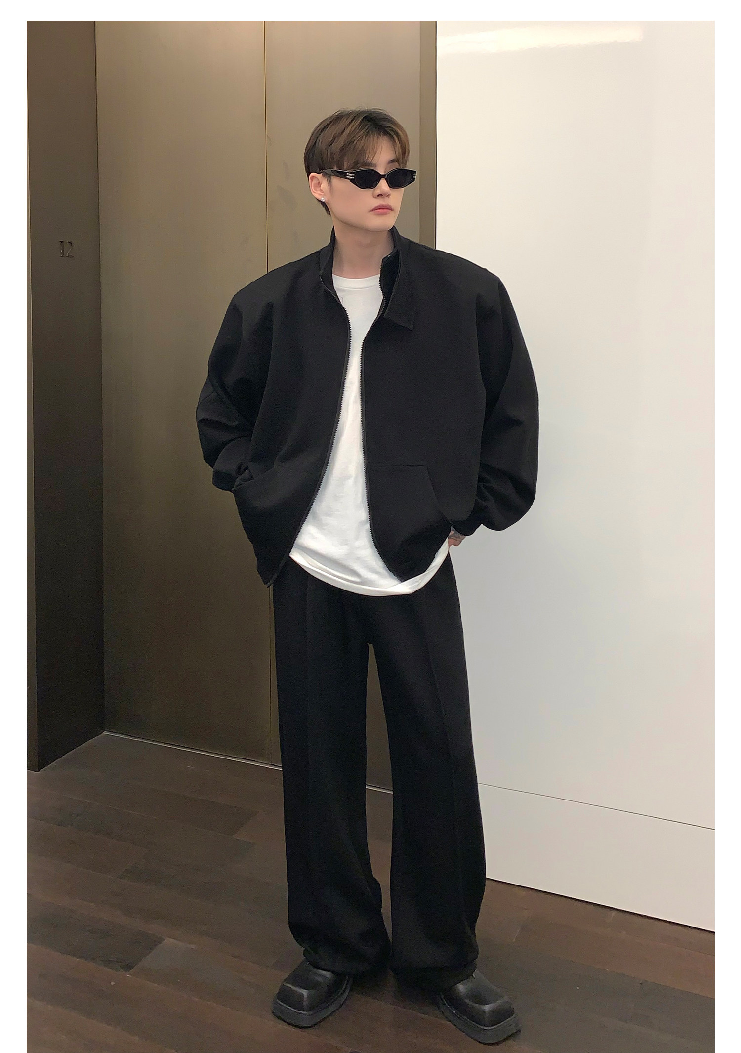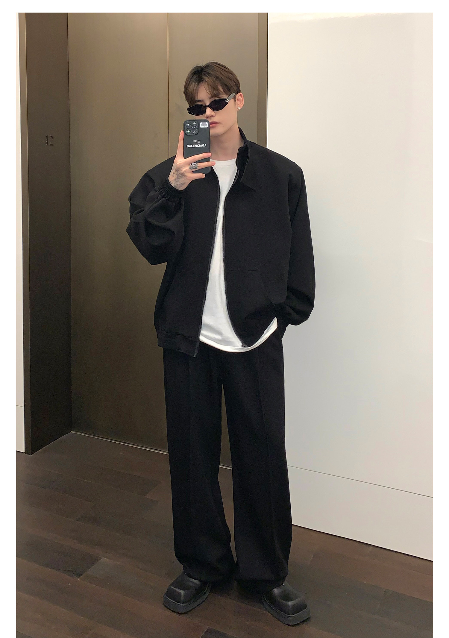 【整套】寬鬆立領開衫+運動休閒褲兩件套裝