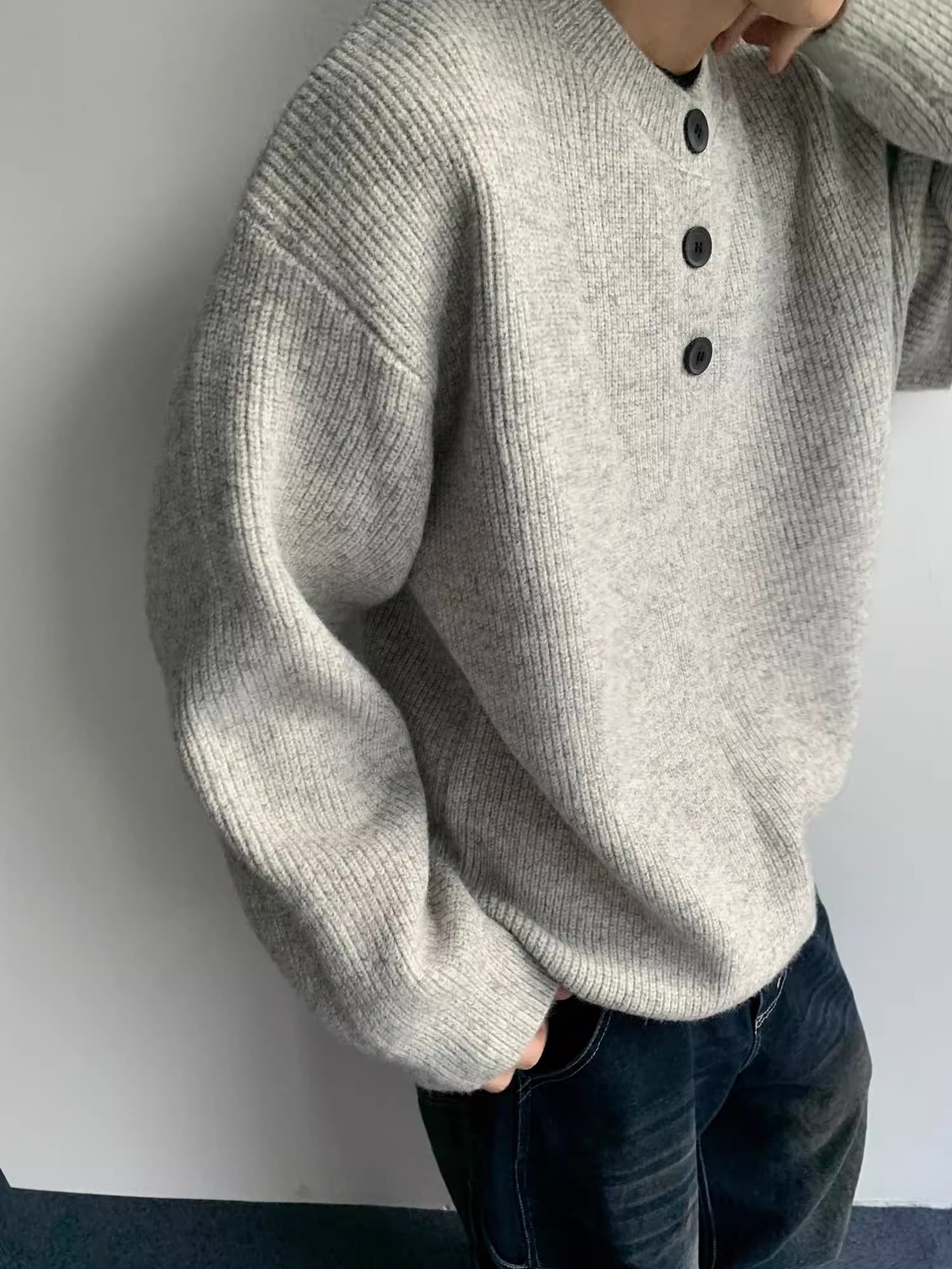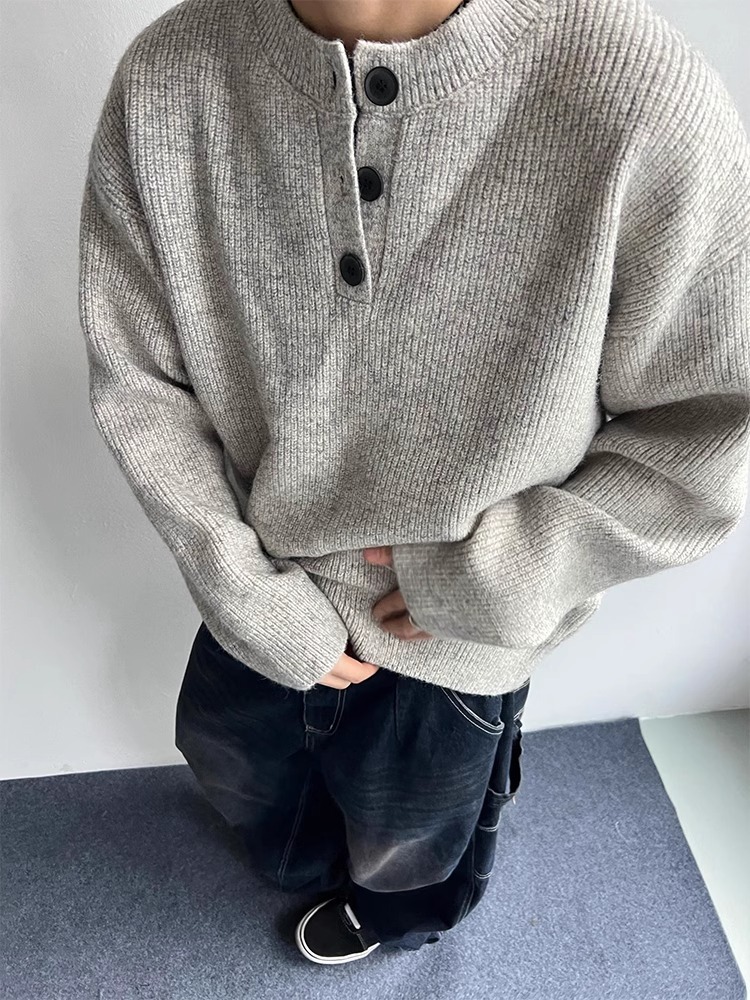 美式復古亨利領慵懶風高級感針織衫