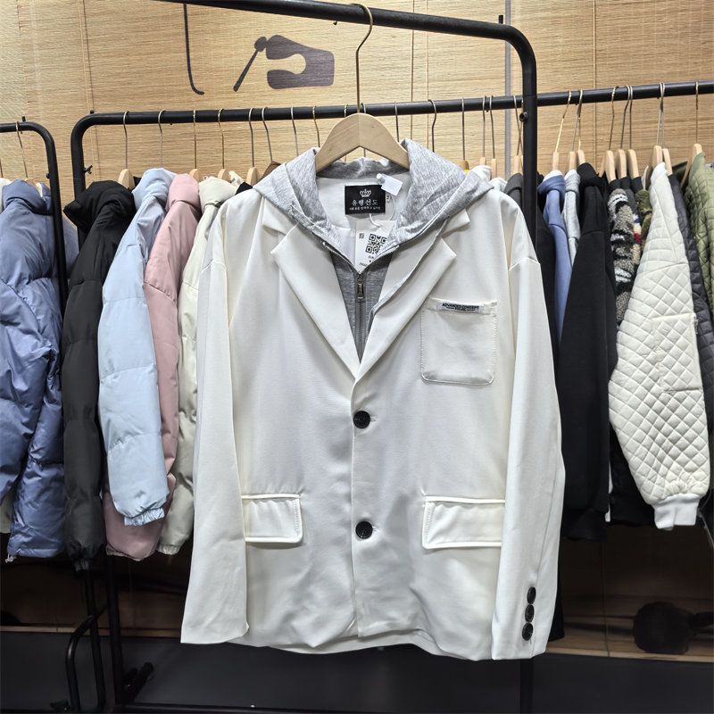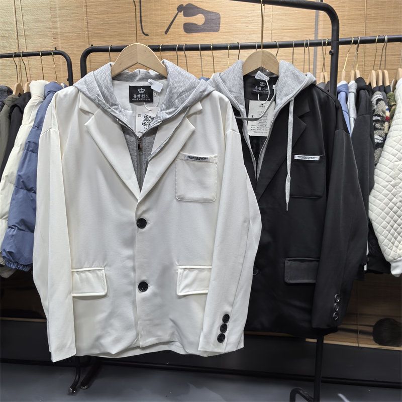 假兩件連帽港風寬鬆休閒高級帥氣西裝外套