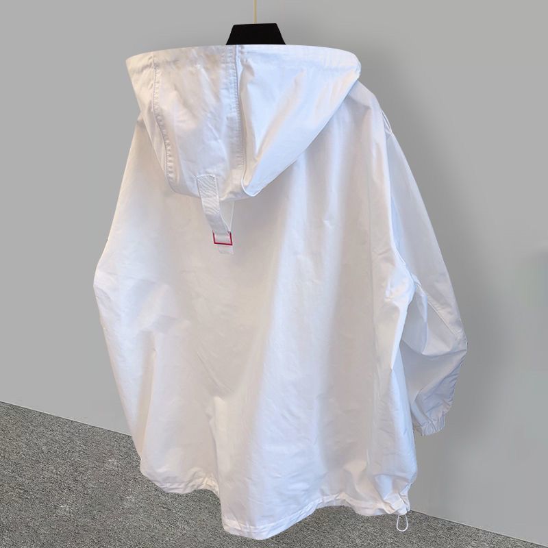 韓系大碼工裝設計拼接衝鋒衣風衣連帽T