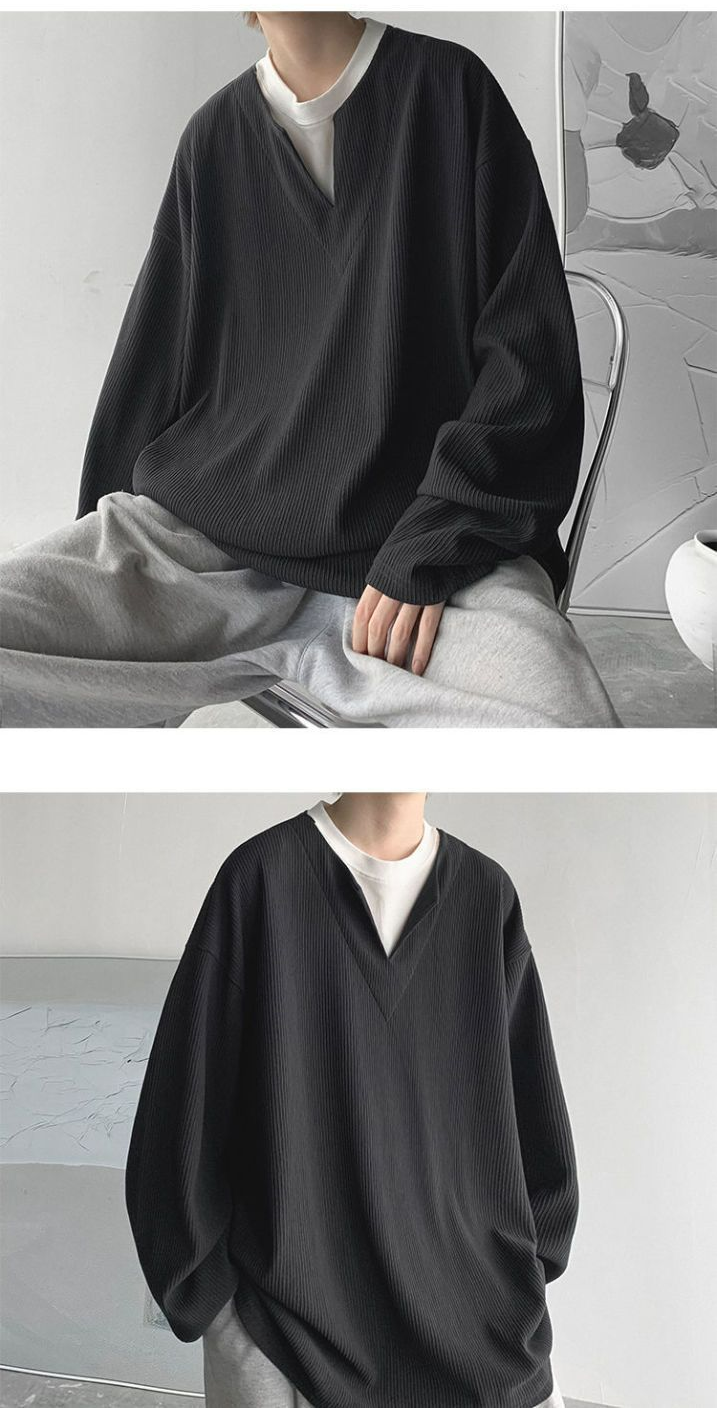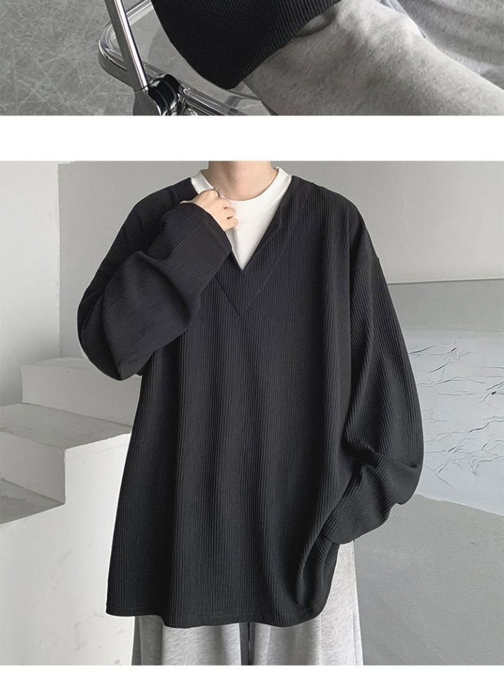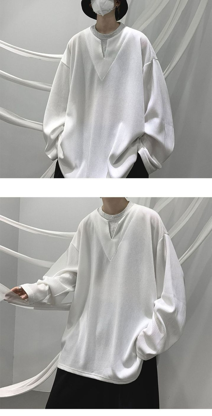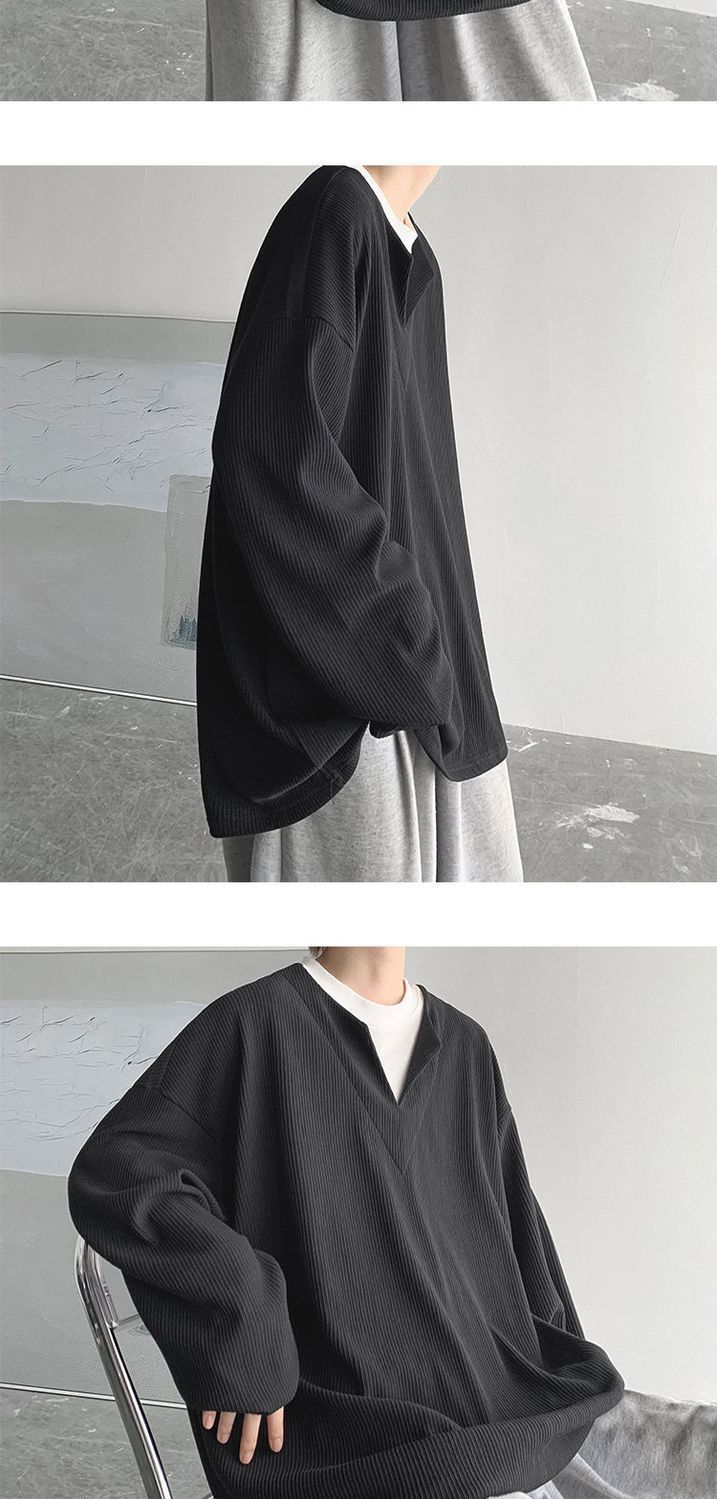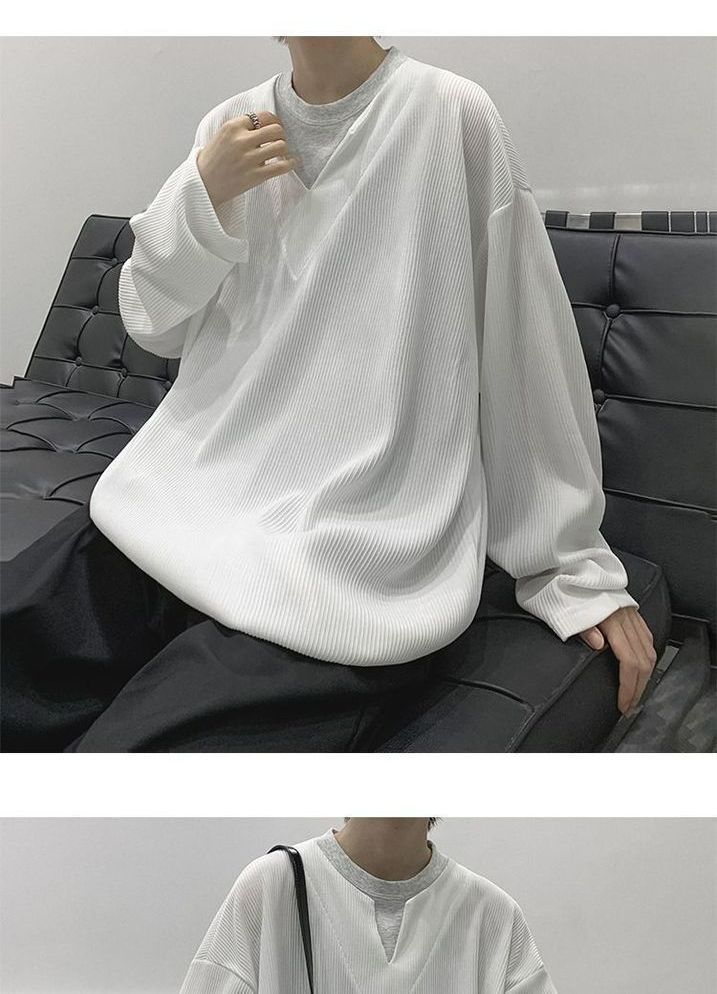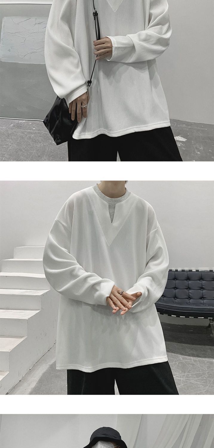 垂墜感潮流休閒假兩件港風日系長袖T恤