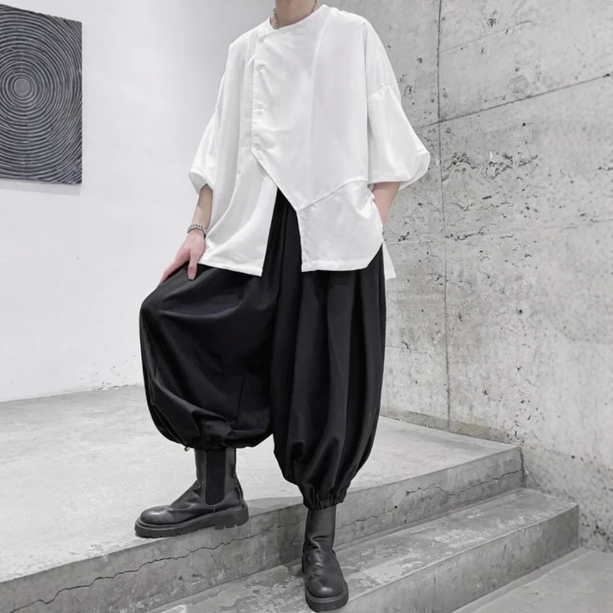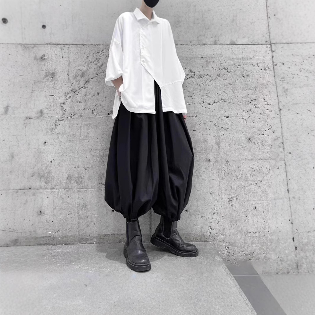 寬鬆束腳八分燈籠褲大襠哈倫褲