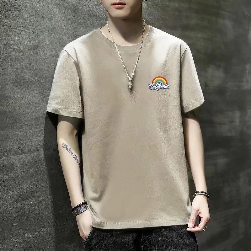韓版時尚百搭修身彩虹印花休閒短袖T恤