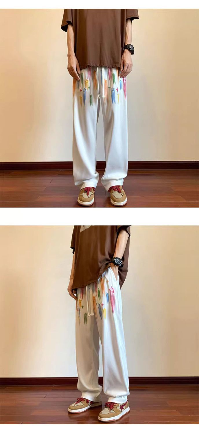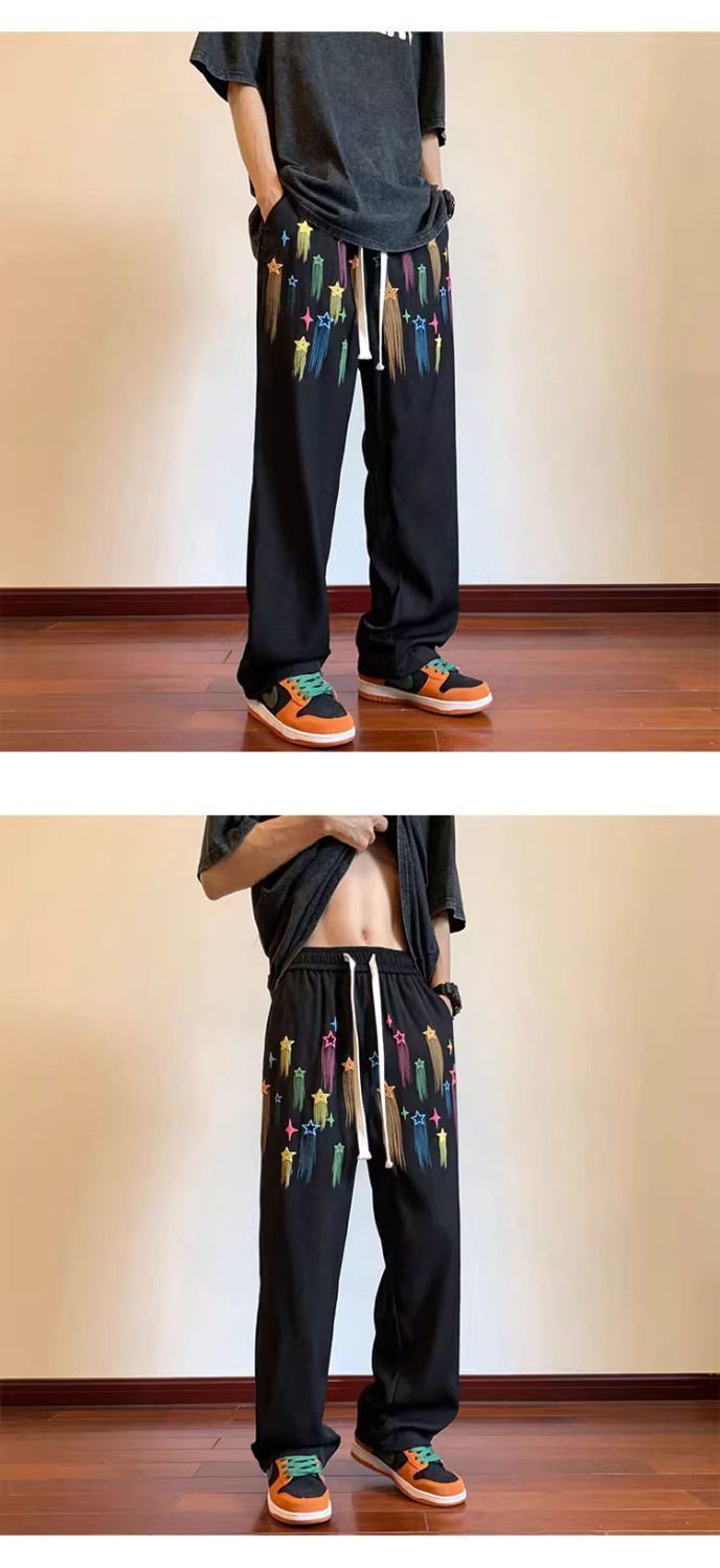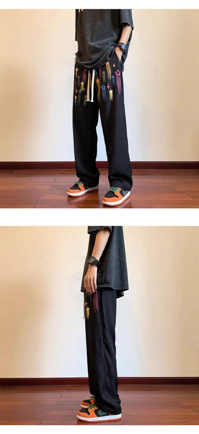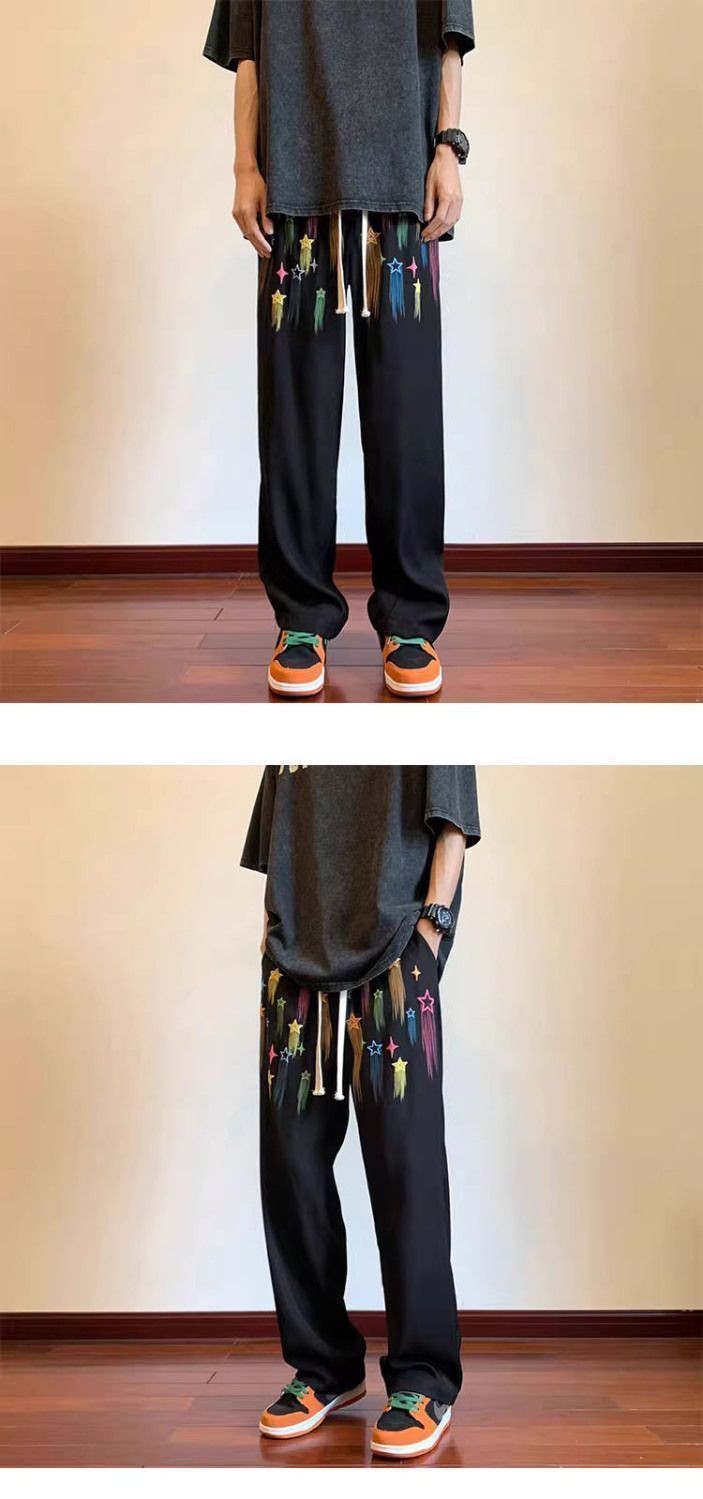 塗鴉星星美式復古休閒垂感直筒運動褲