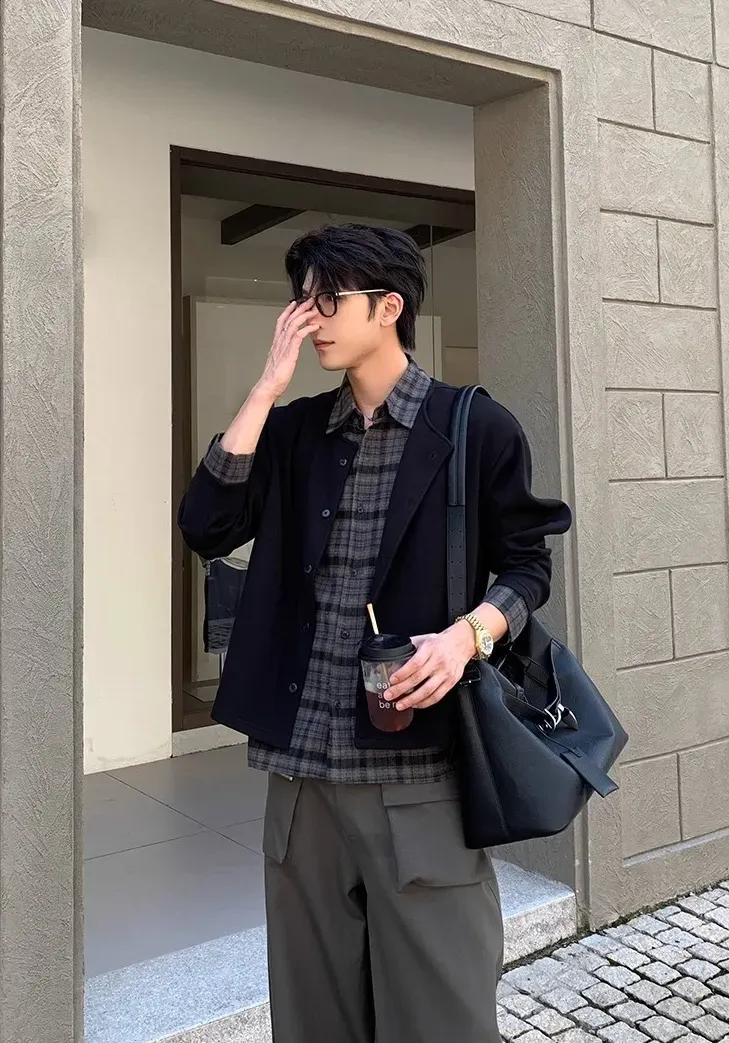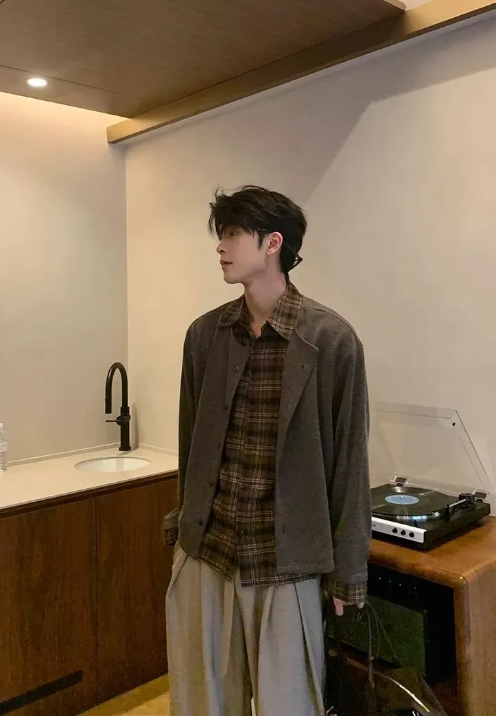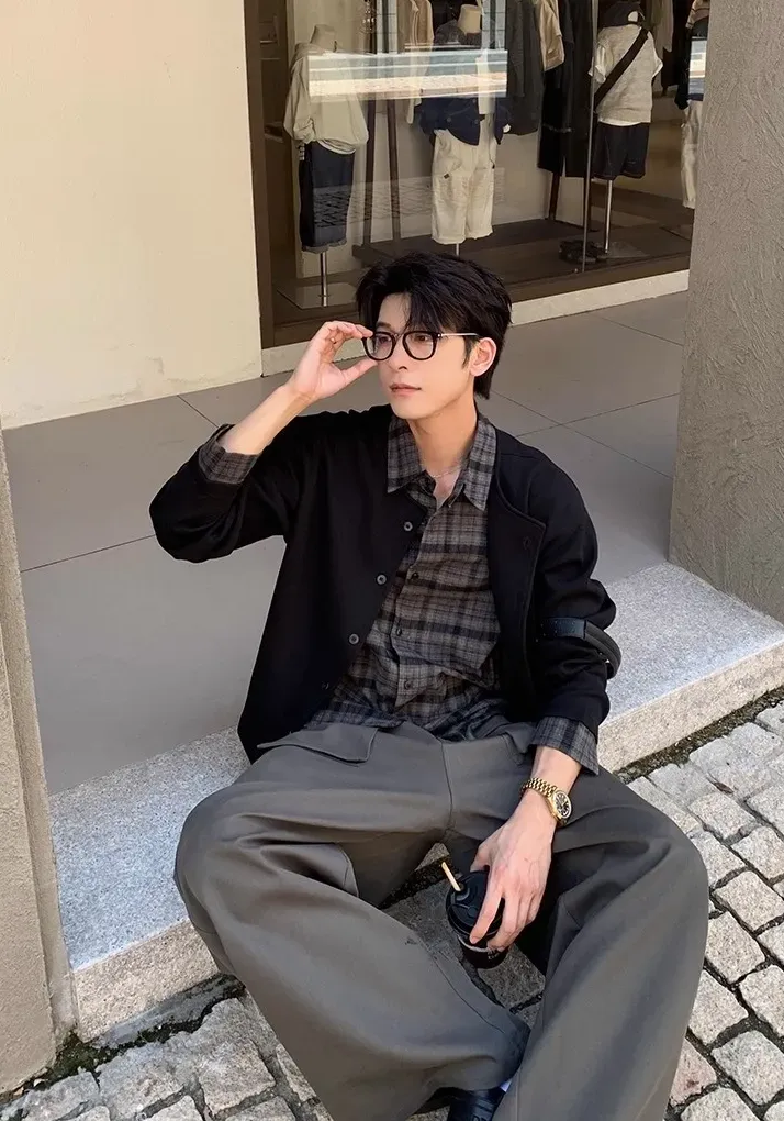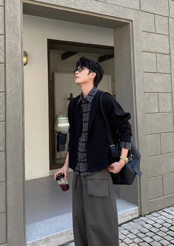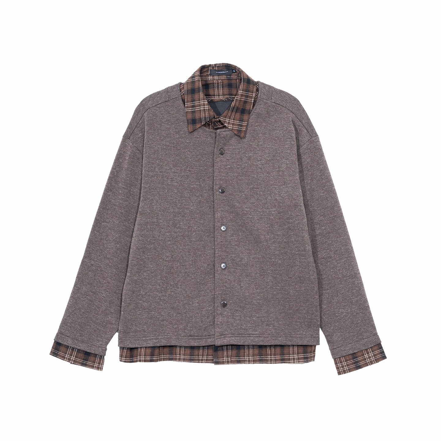 假兩件簡約慵懶輕奢痞帥翻領襯衫