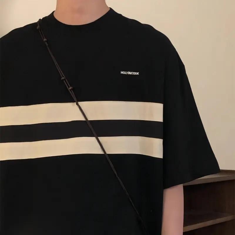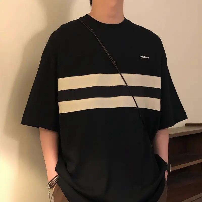 高街復古小眾情侶寬鬆條紋短袖T恤