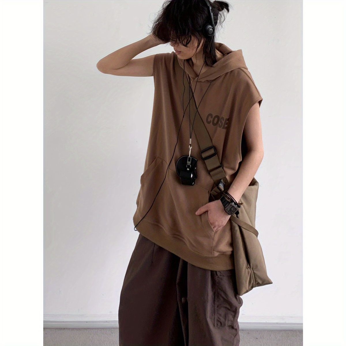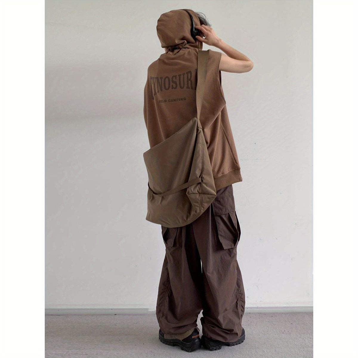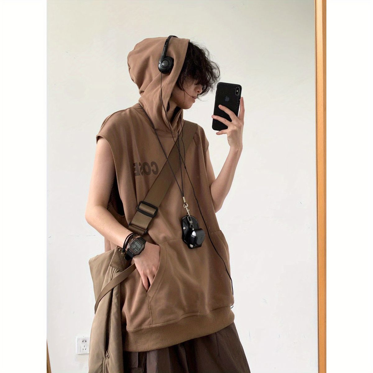 【單件/套裝】日系運動連帽背心+咖色工裝褲兩件套