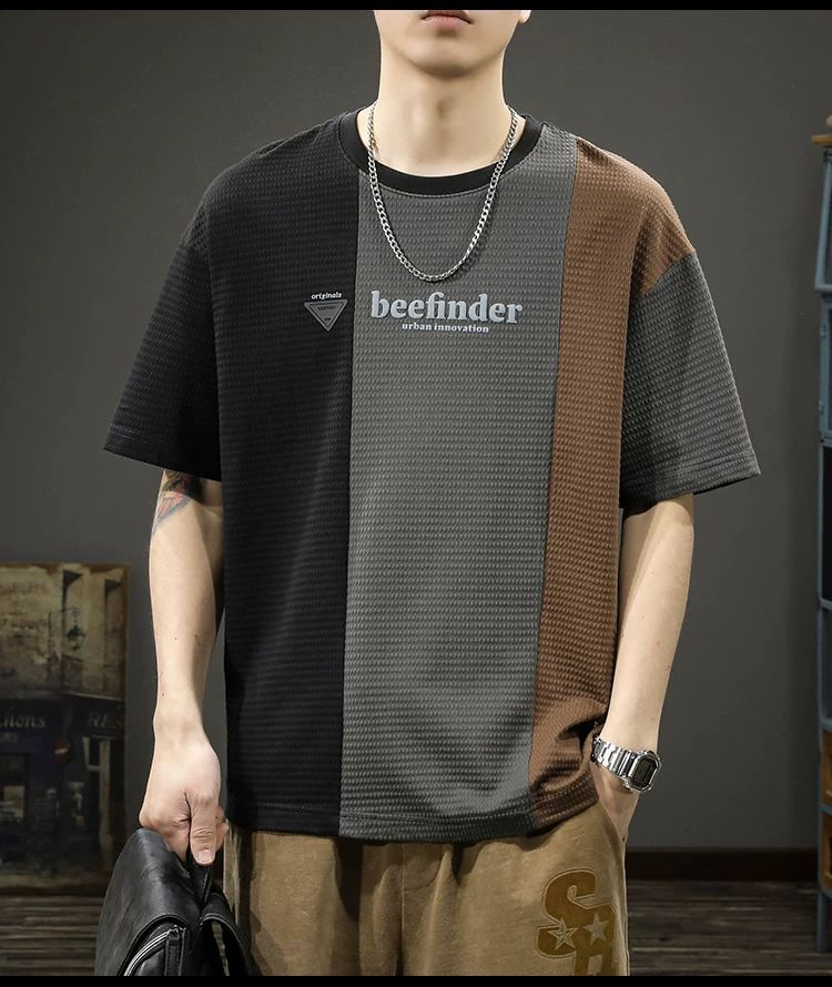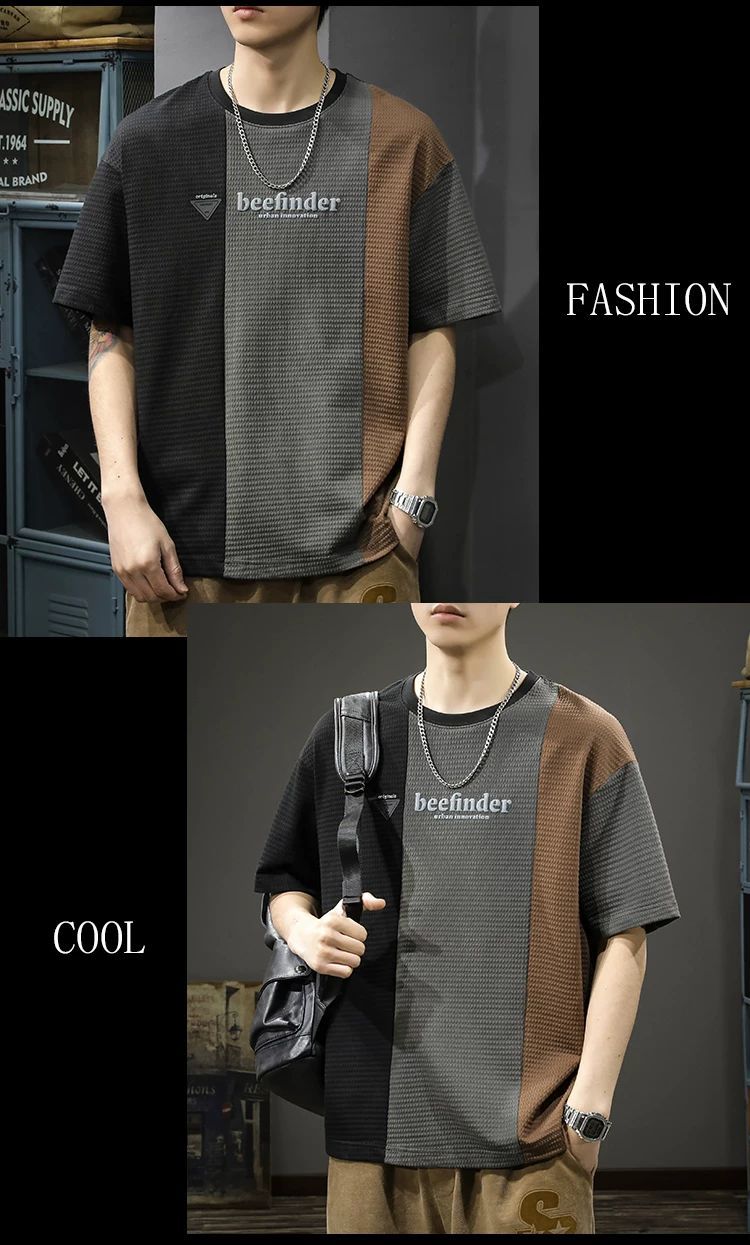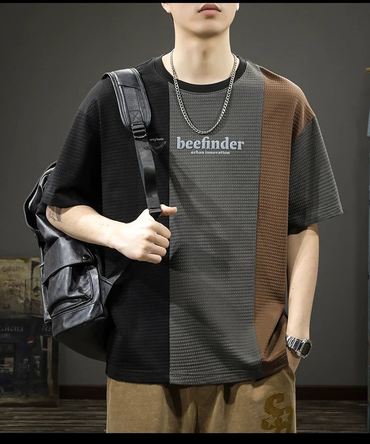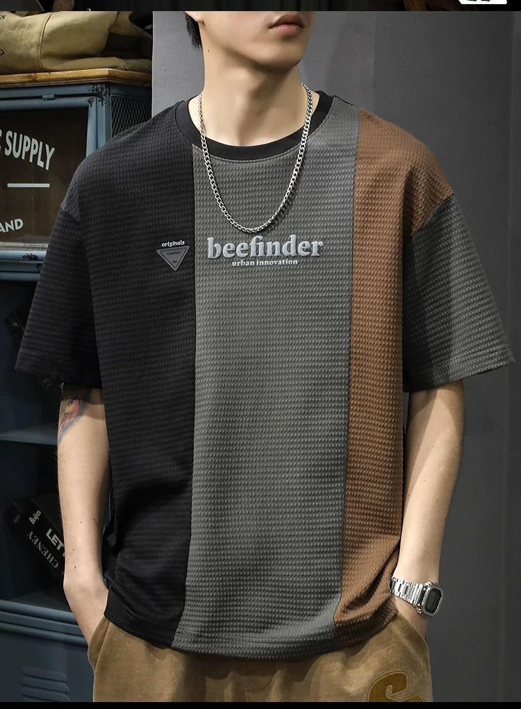 華夫格拼色寬鬆休閒圓運動透氣短袖t恤
