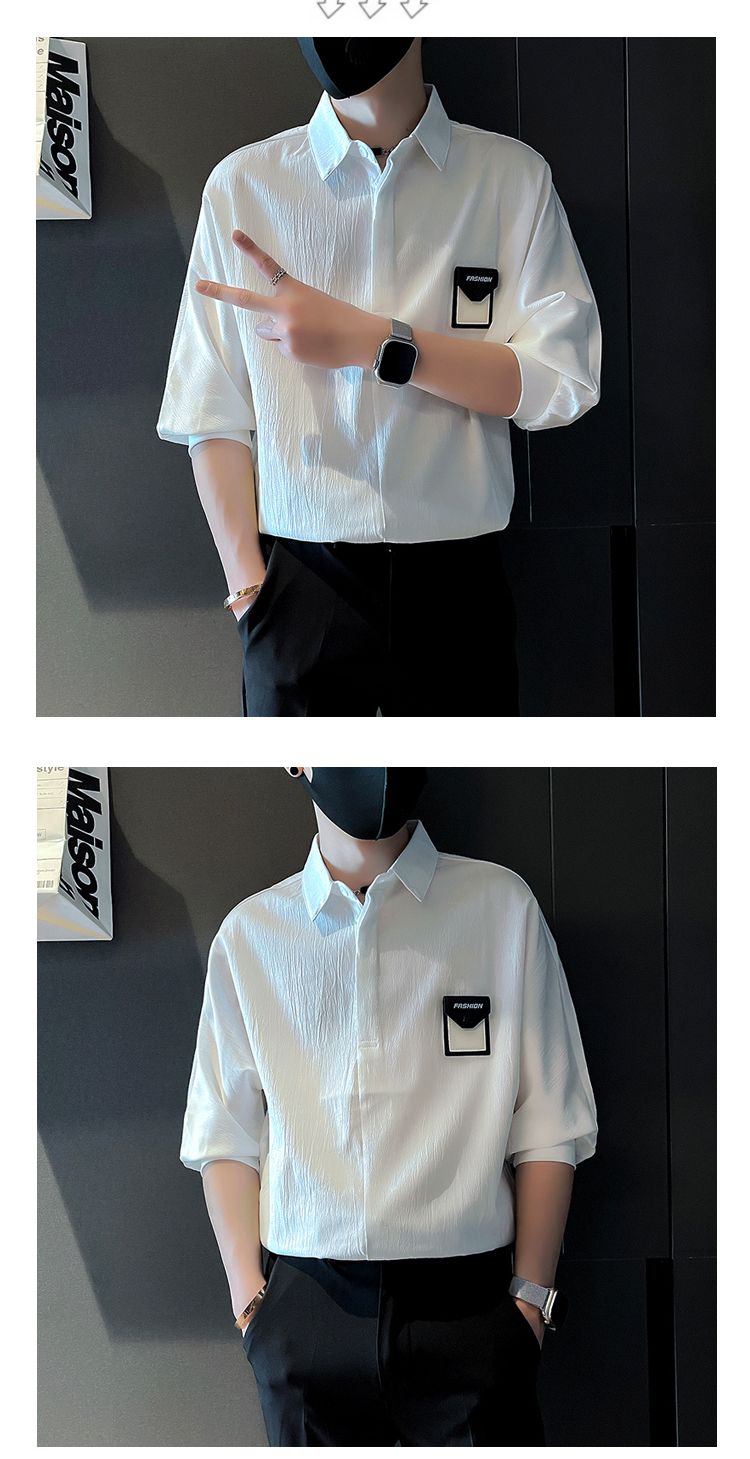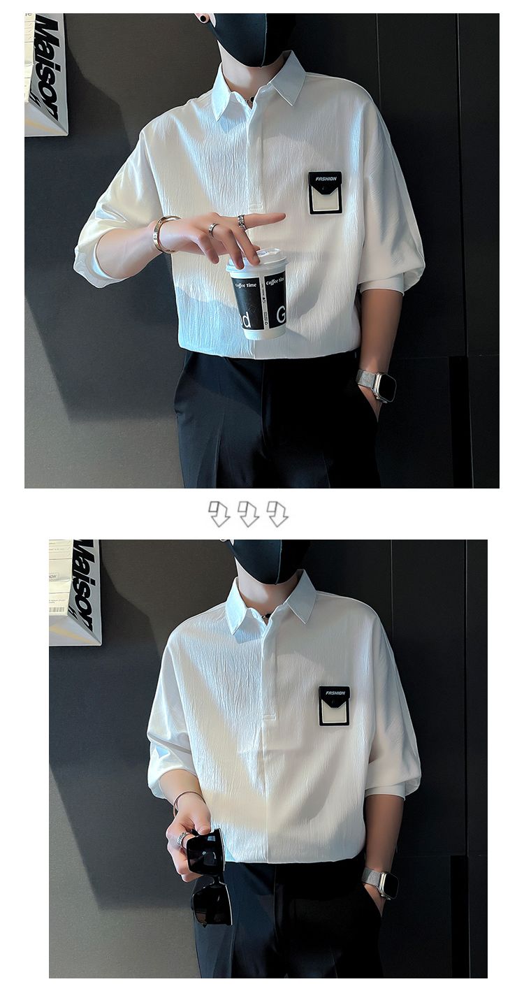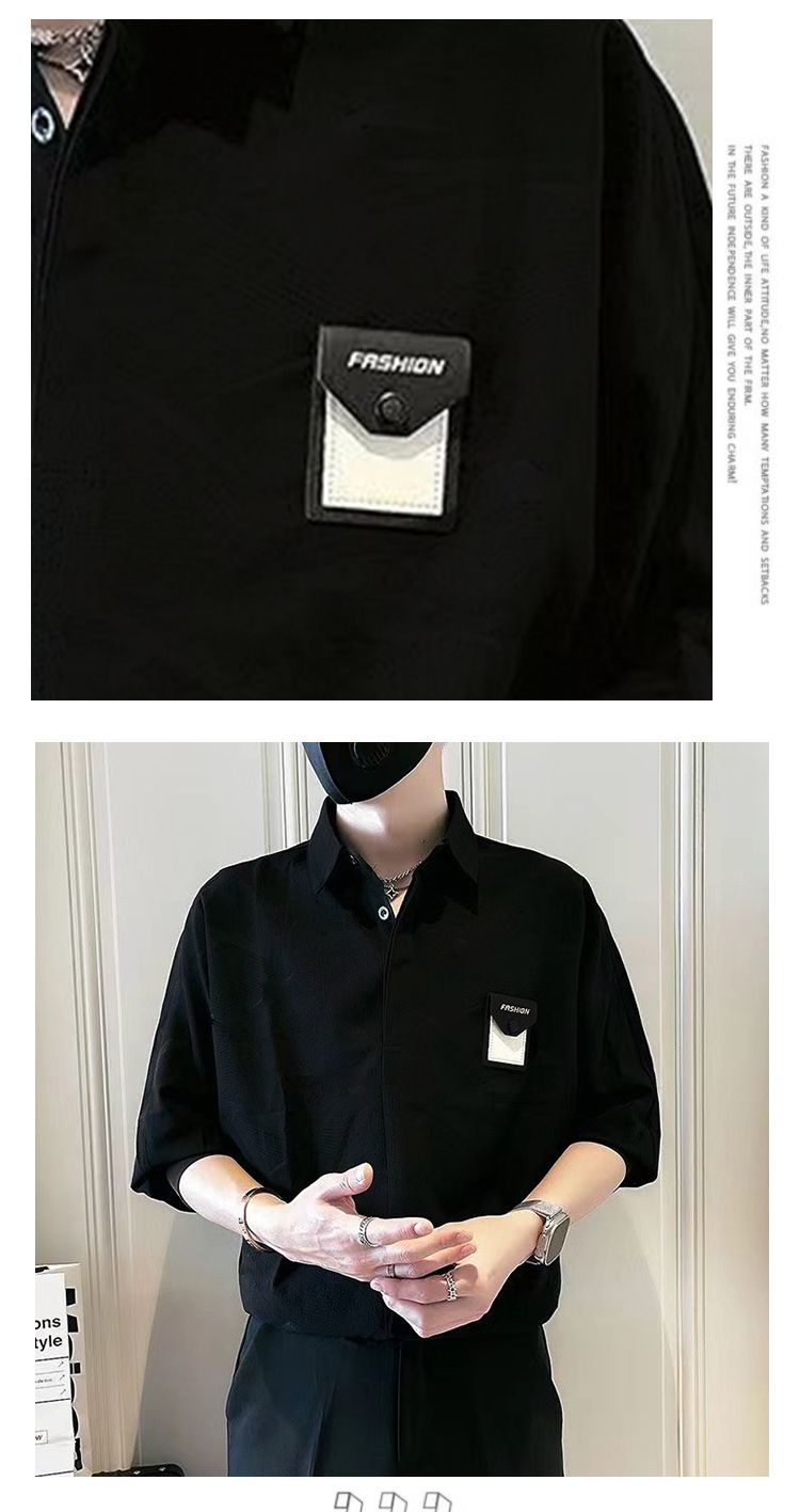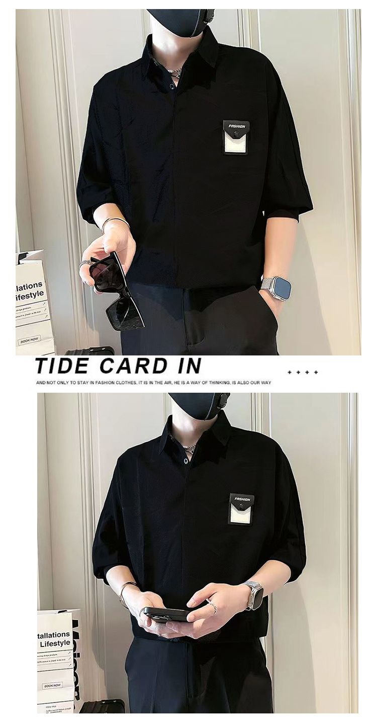 潮流時尚休閒寬鬆冰絲五分短袖襯衫