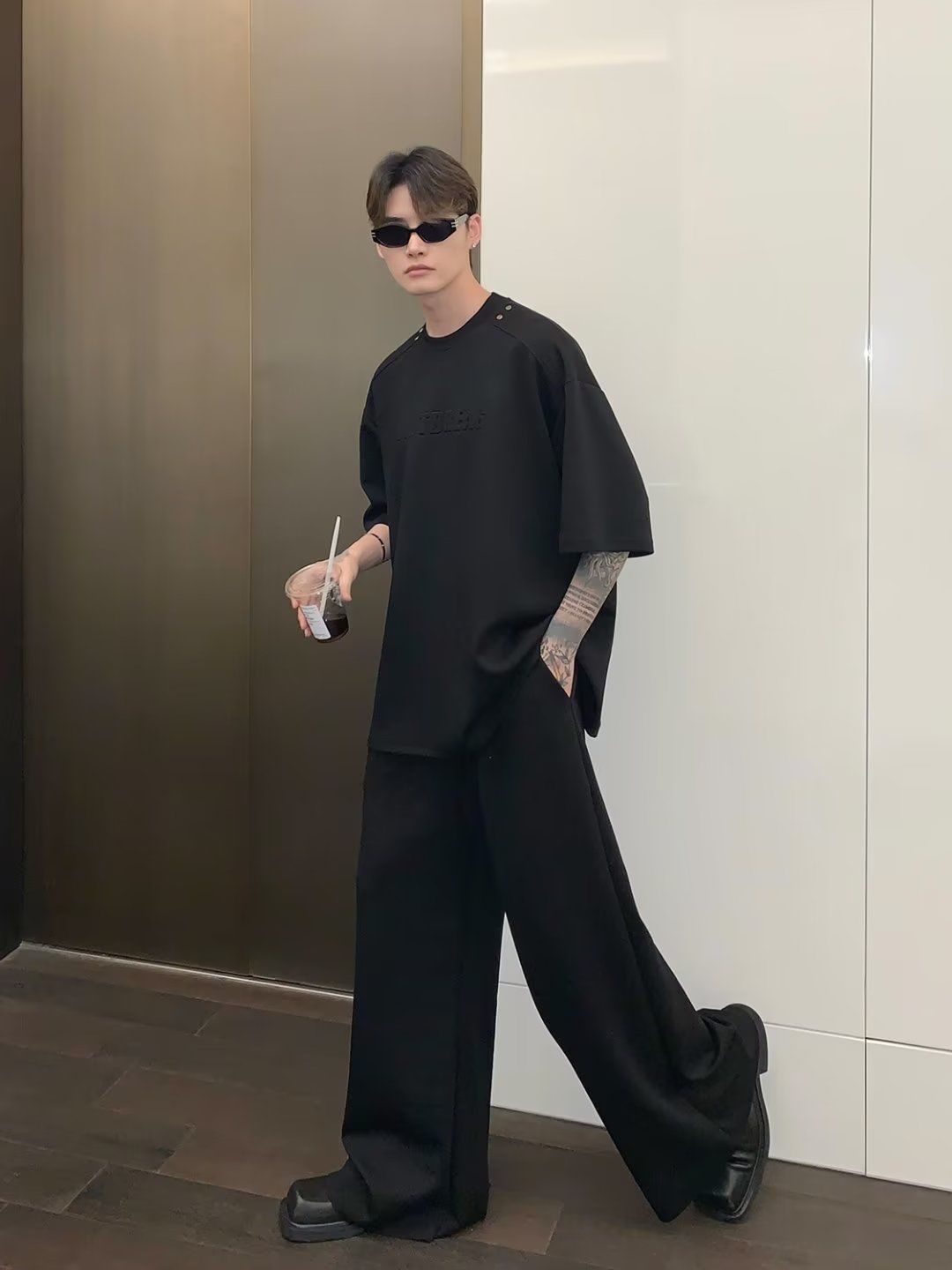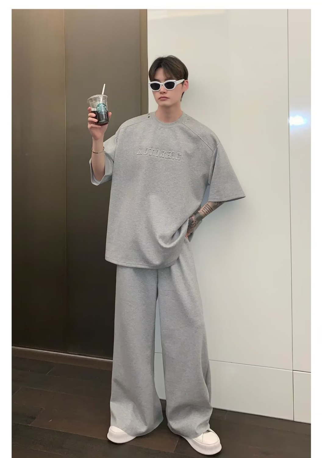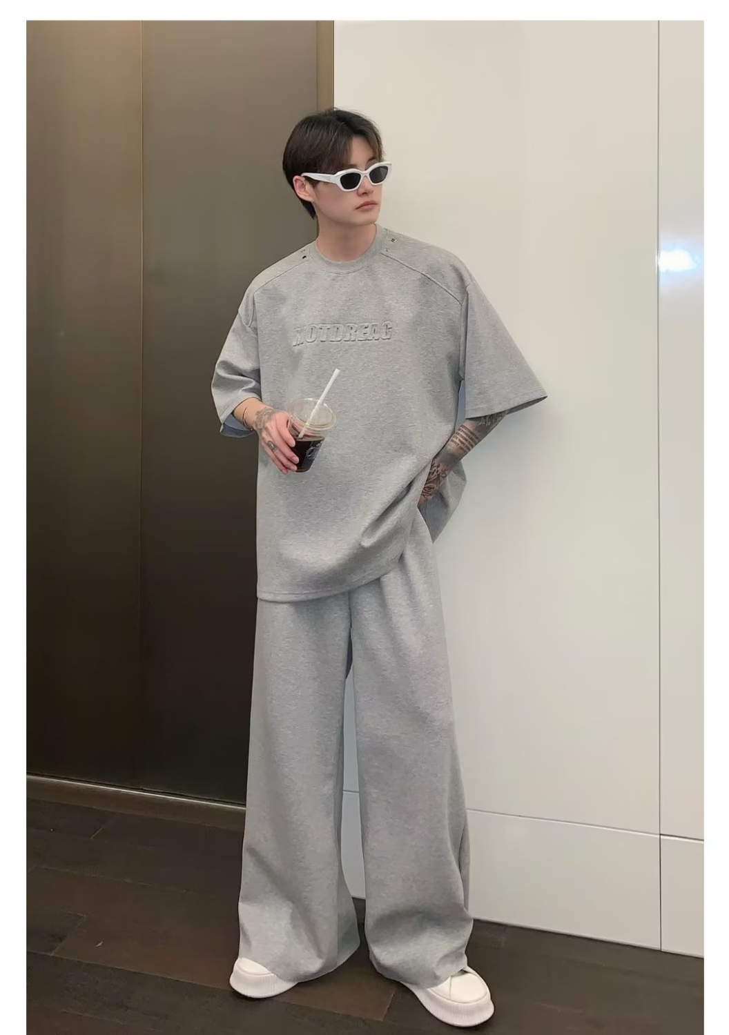 【整套】休閑寬松短袖t恤+直筒闊腿褲兩件套