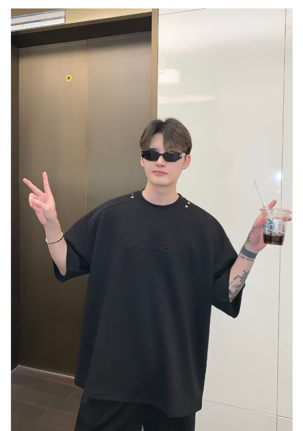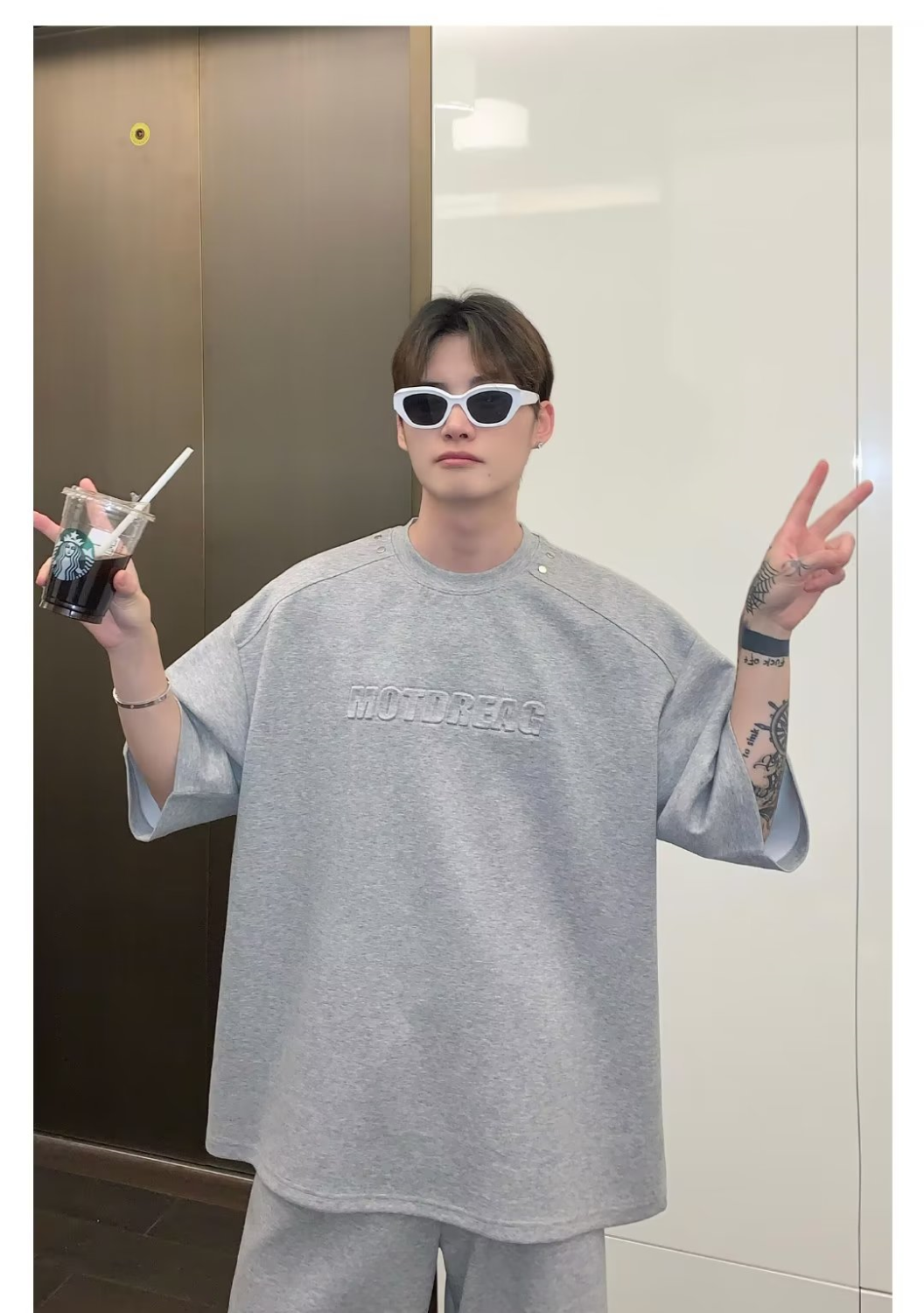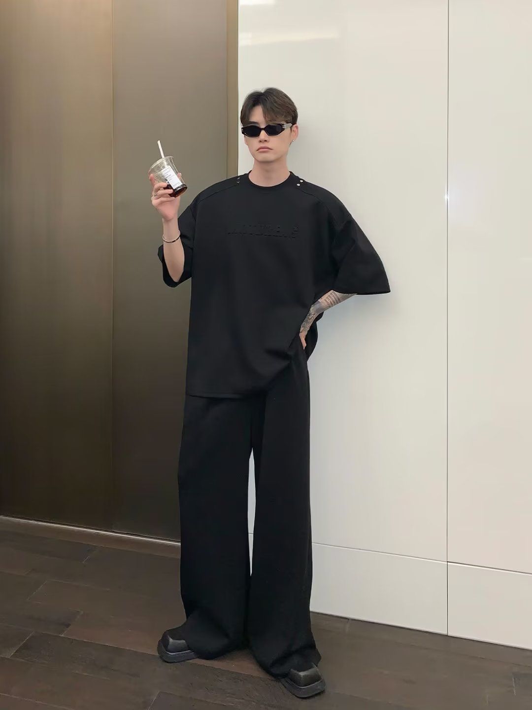 【整套】休閑寬松短袖t恤+直筒闊腿褲兩件套
