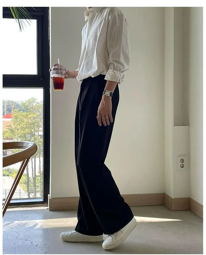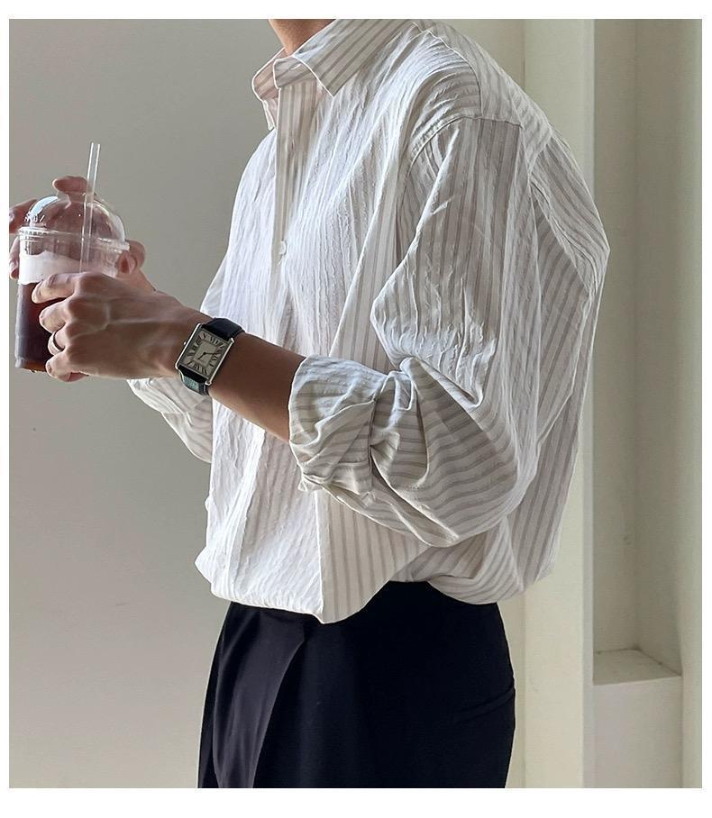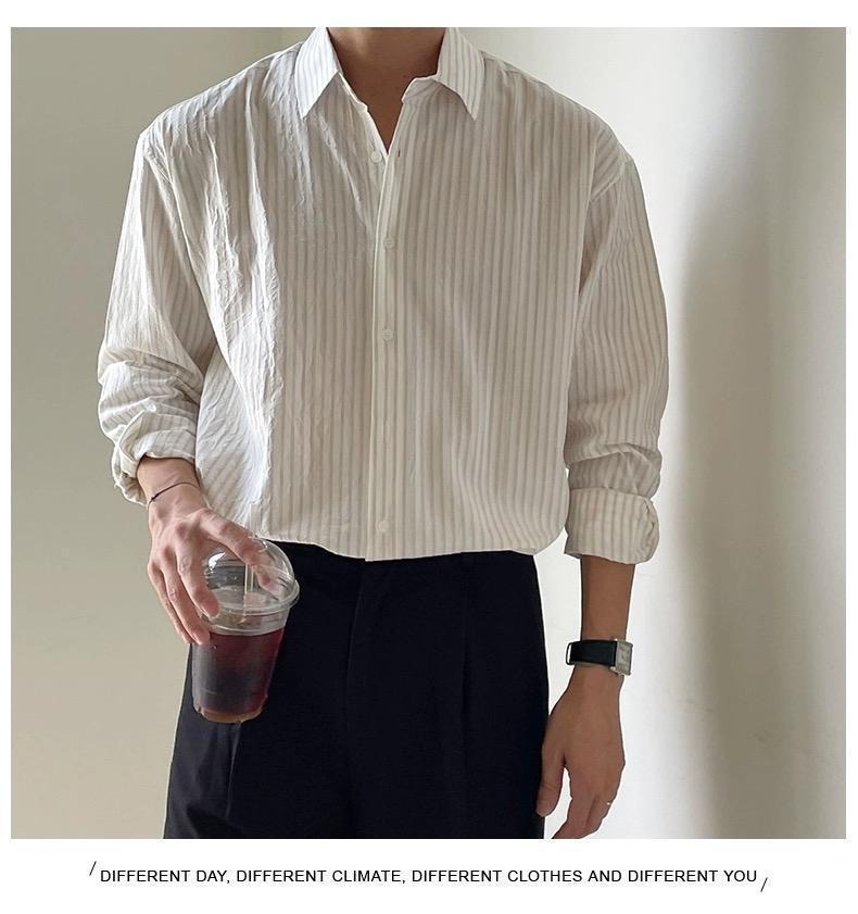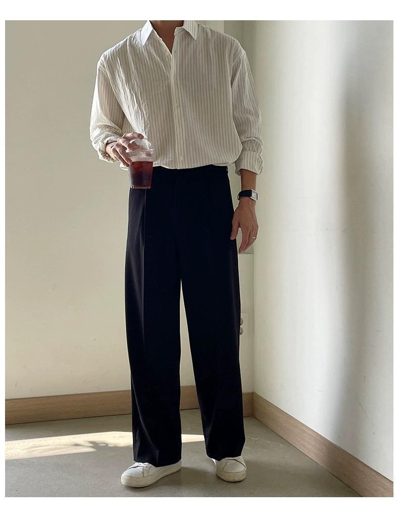 【單件/套裝】條紋休閑襯衫+西褲兩件套裝