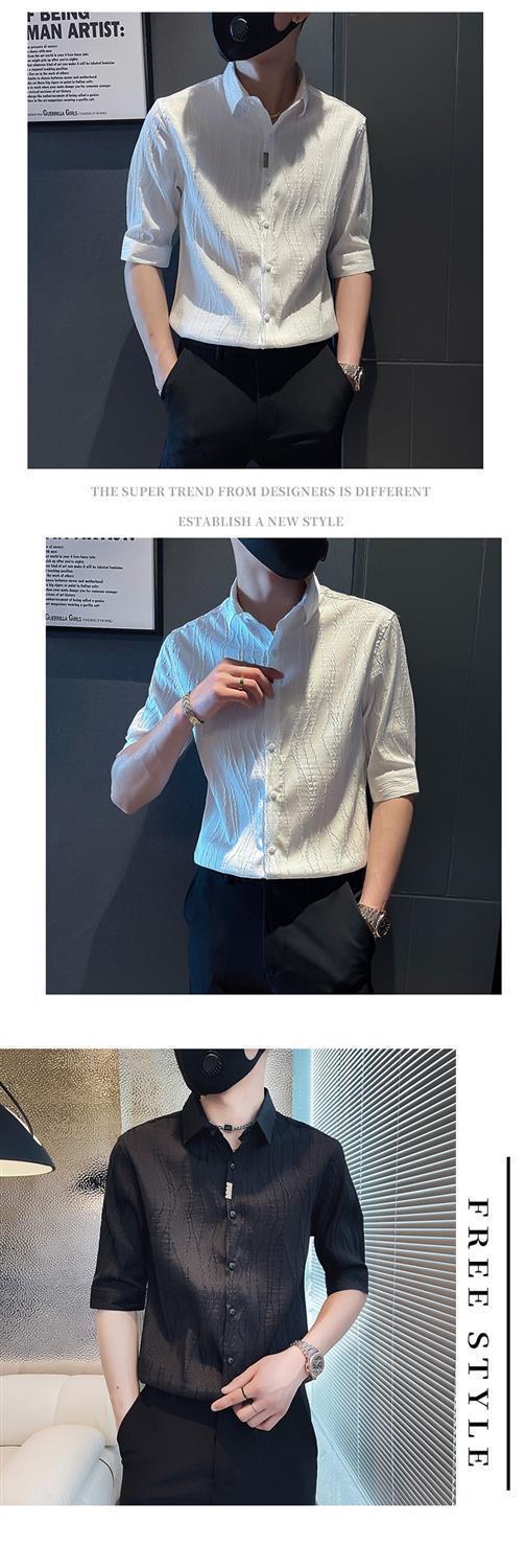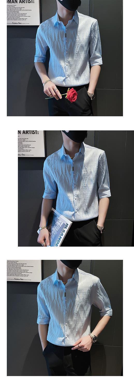 【單件/套裝】痞帥冰絲七分短袖襯衫+休閑西褲兩件套