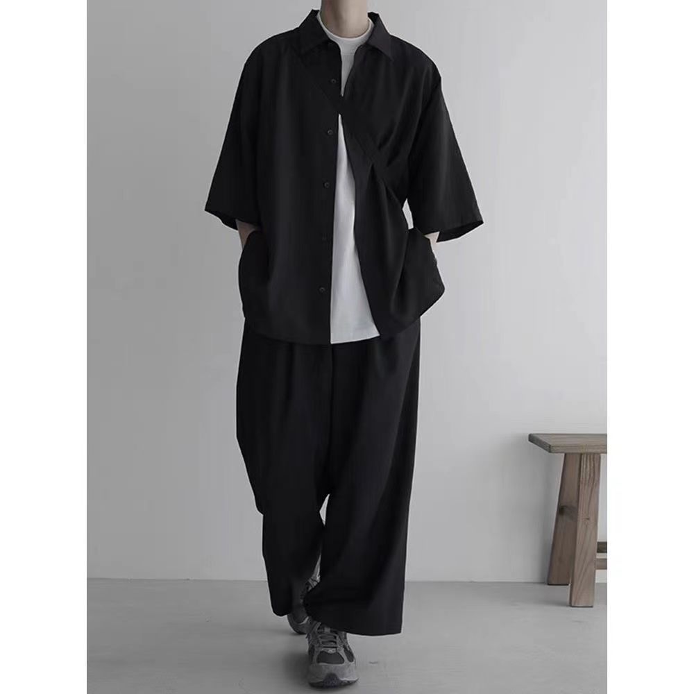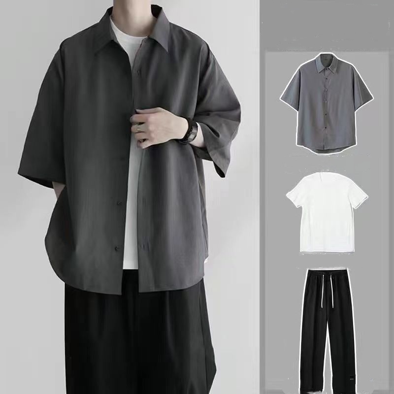 【單件/套裝】韓版寬鬆五分短袖冰絲九分褲三件套裝