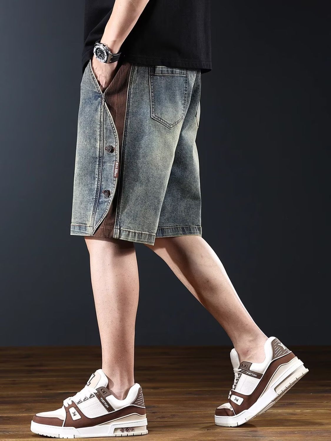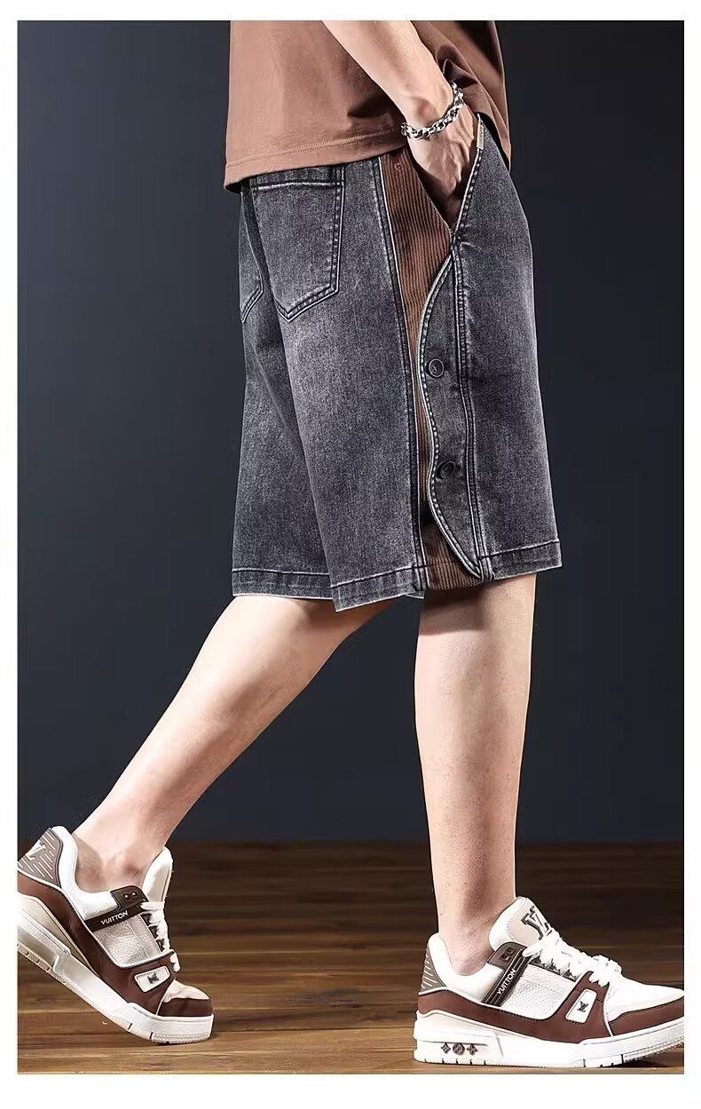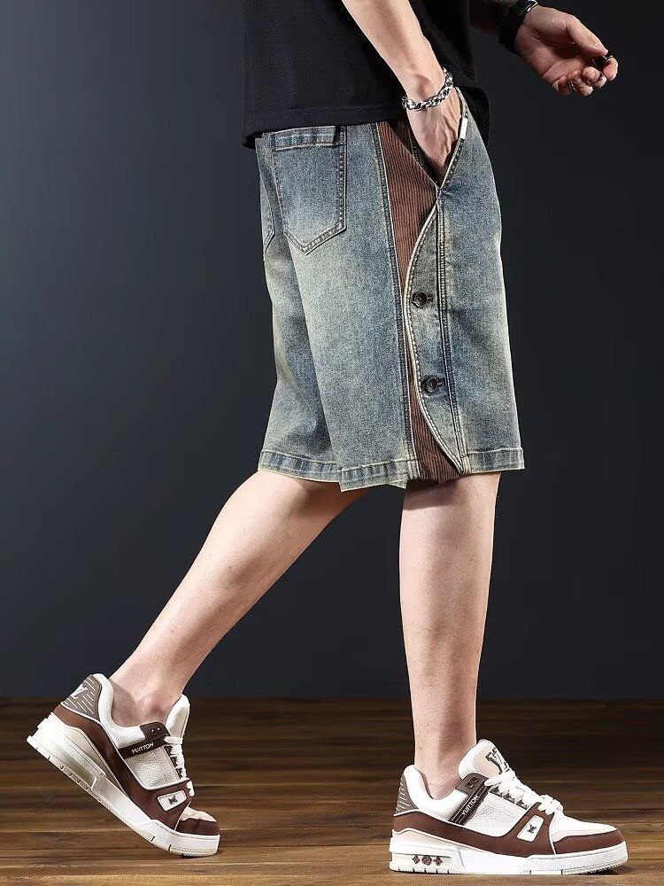 美式復古直筒闊腿薄款寬鬆休閒牛仔短褲