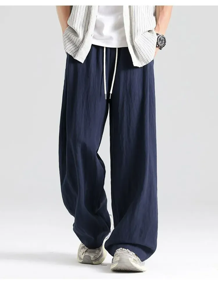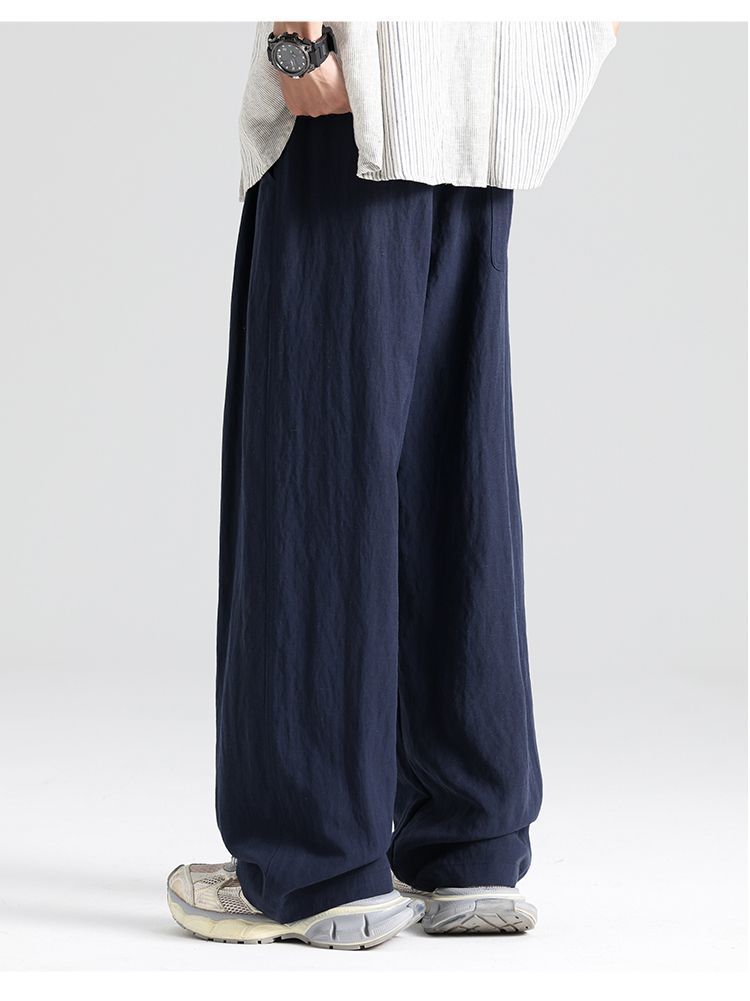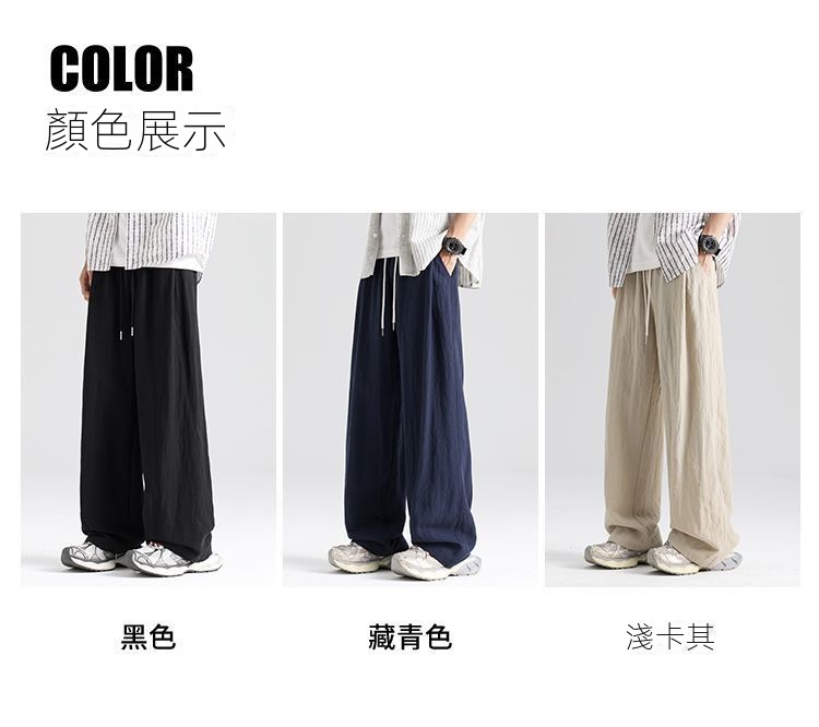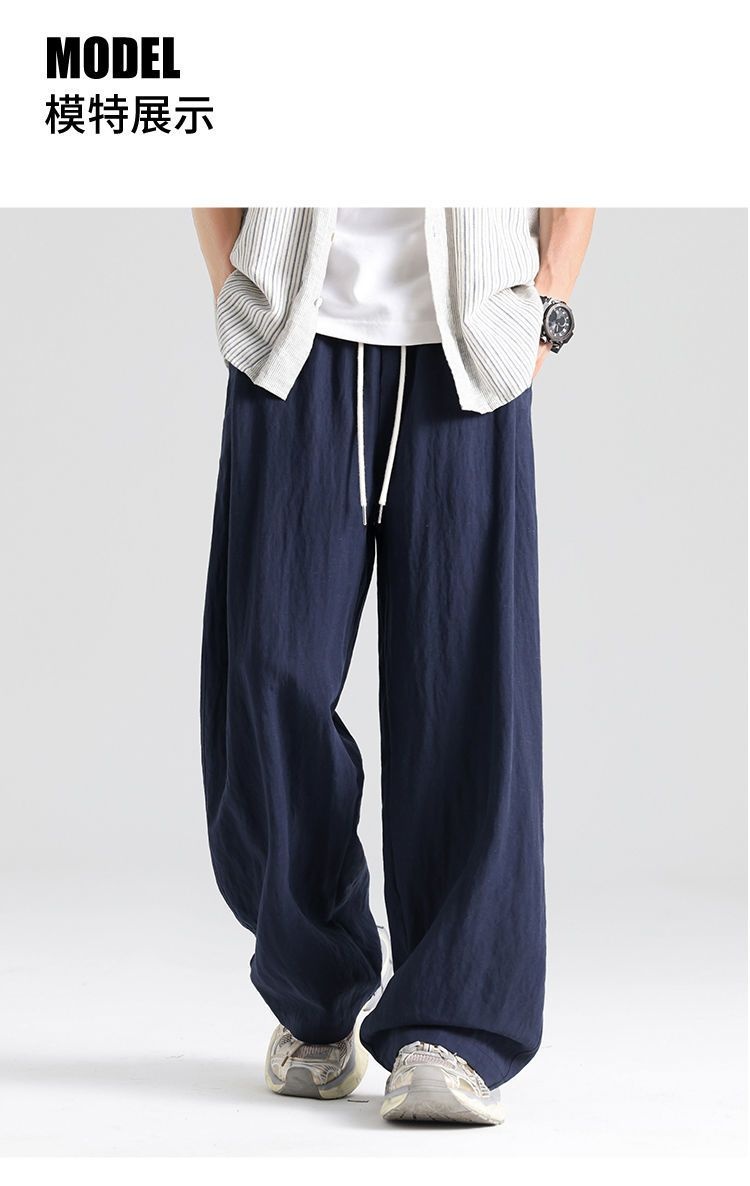 薄款透氣直筒寬松天絲亞麻休閑闊腿褲