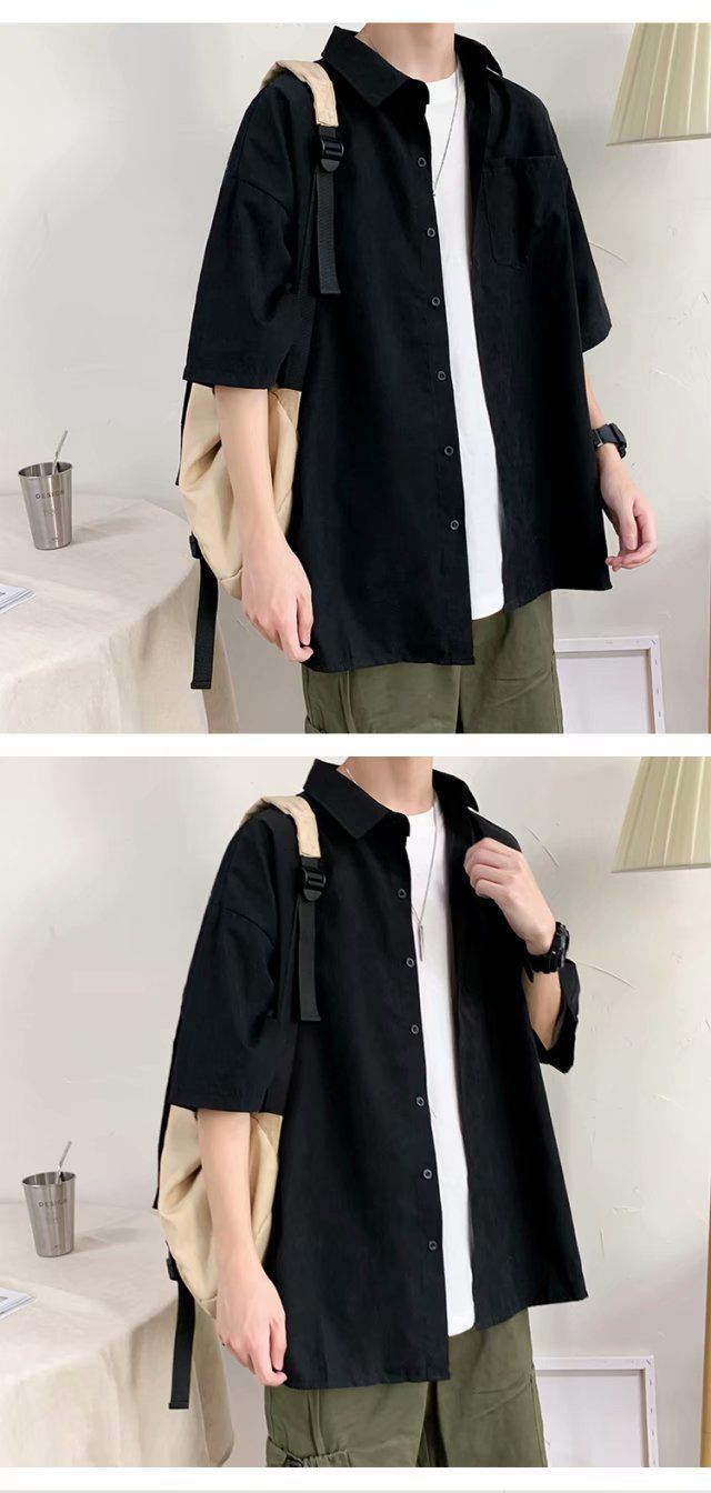 韓版潮流帥氣港風痞帥寬鬆情侶短袖襯衫