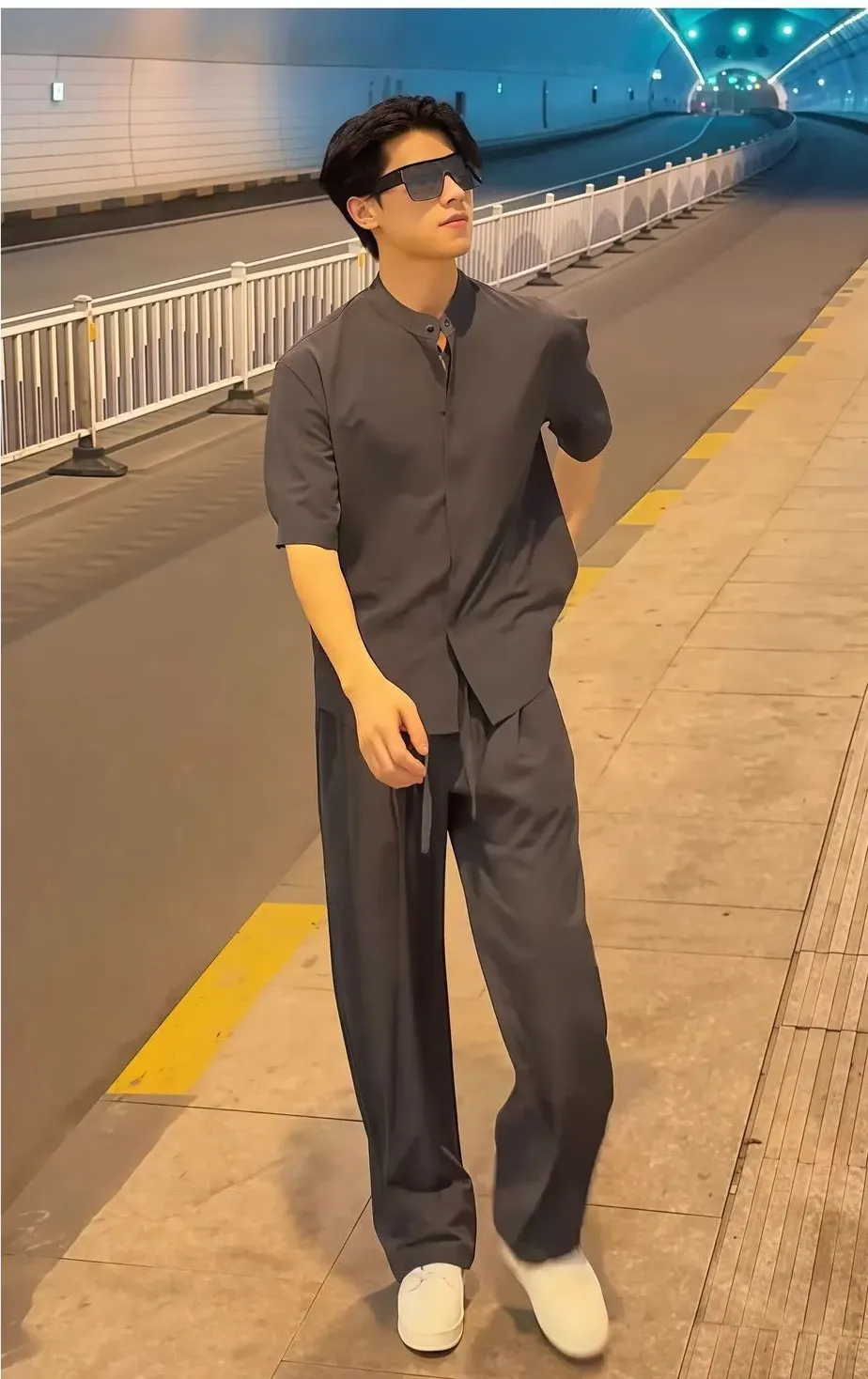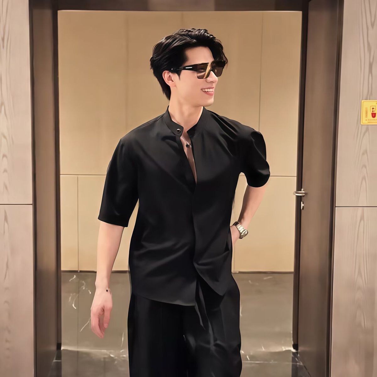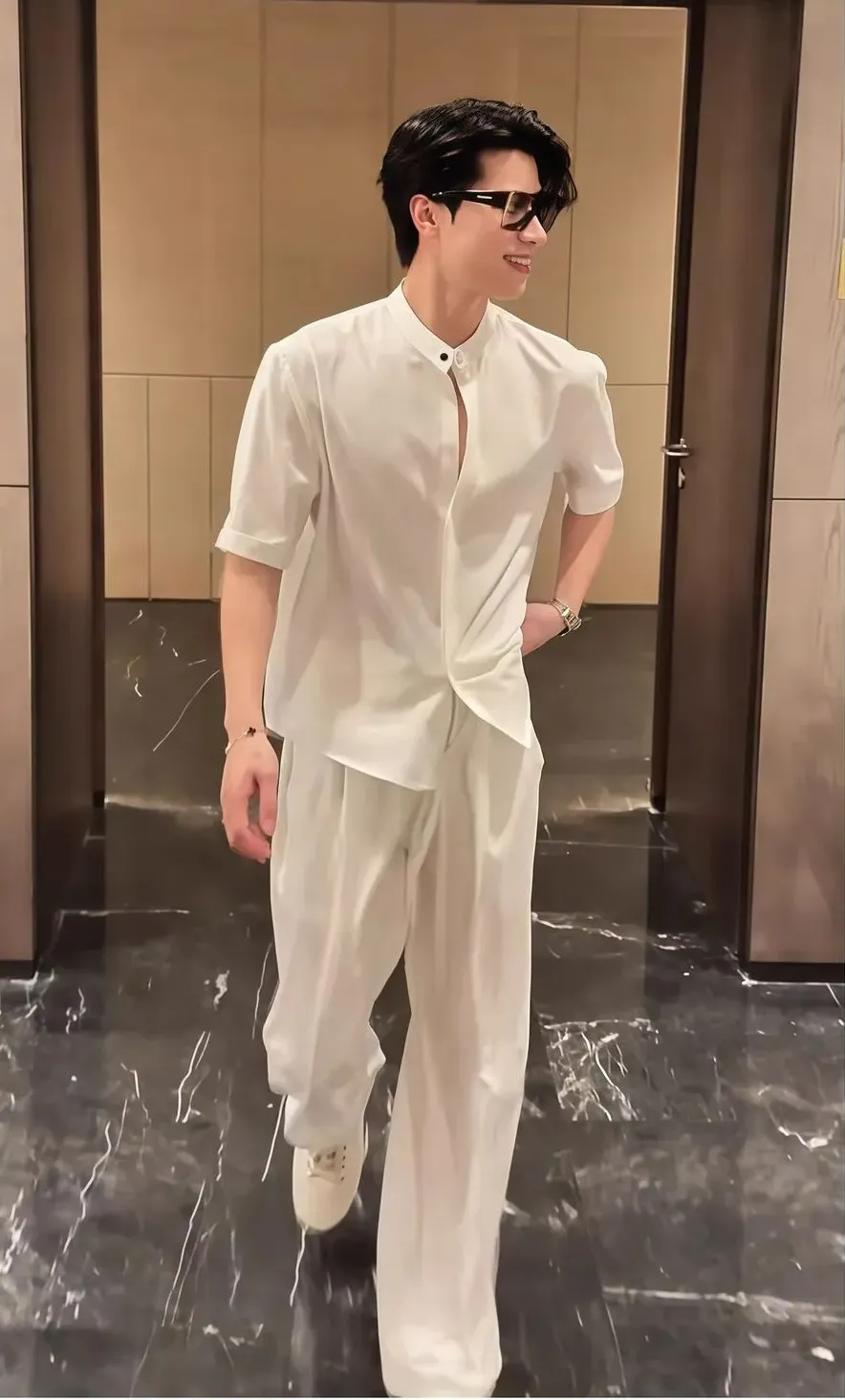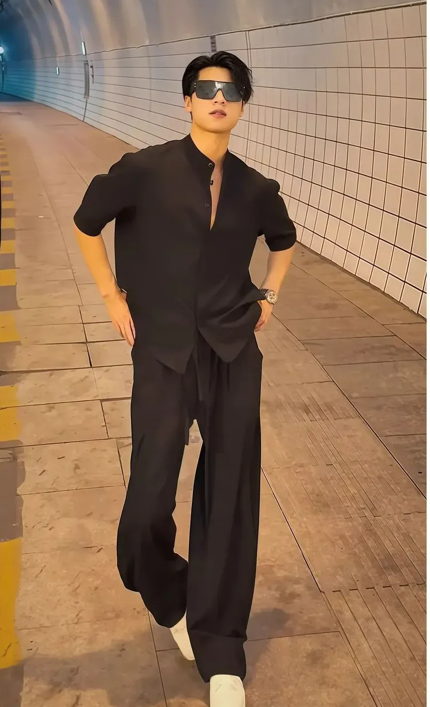 【單件/套裝】韓版潮流冰絲襯衫+西裝褲兩件套