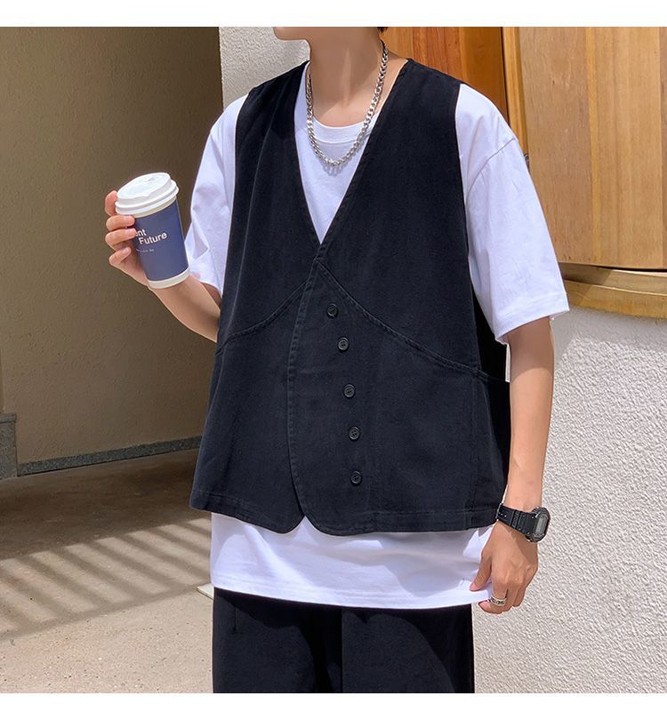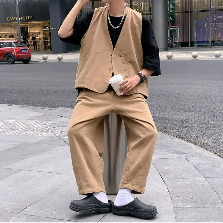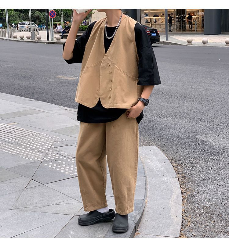 【單件/套裝】日系潮流工裝馬甲+T恤+闊腿褲三件套