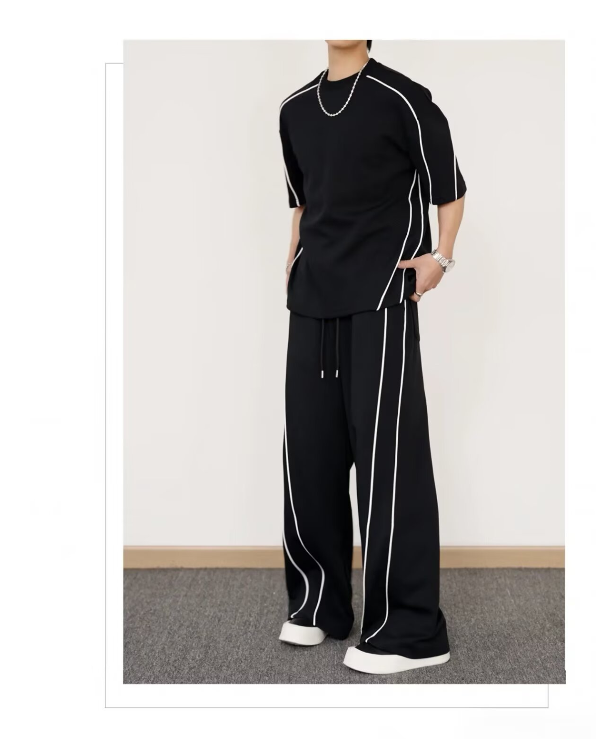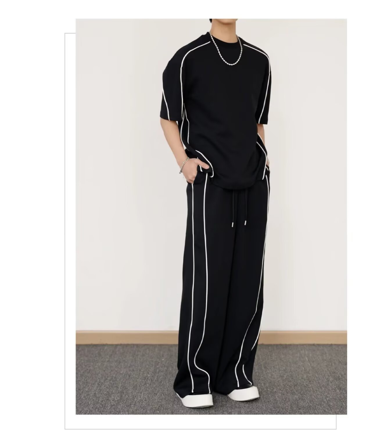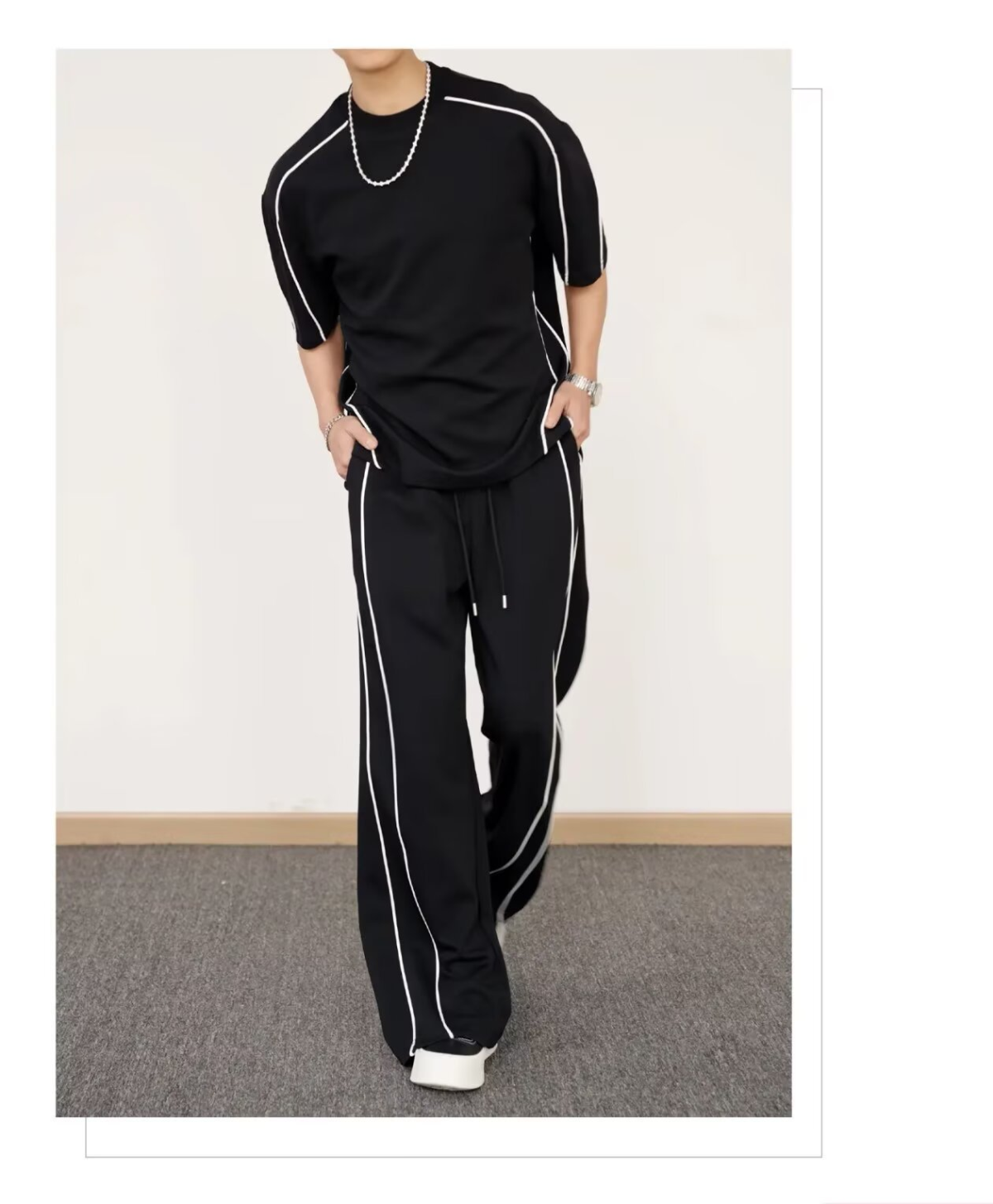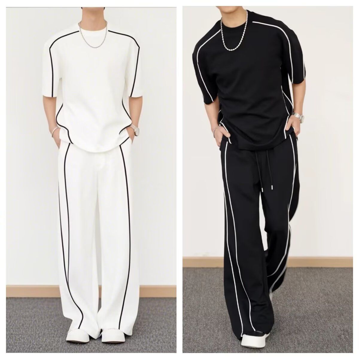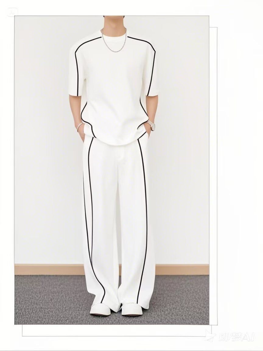 【整套】韓版潮流運動短袖T恤休閒長褲兩件套裝