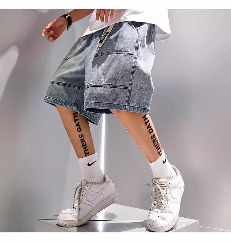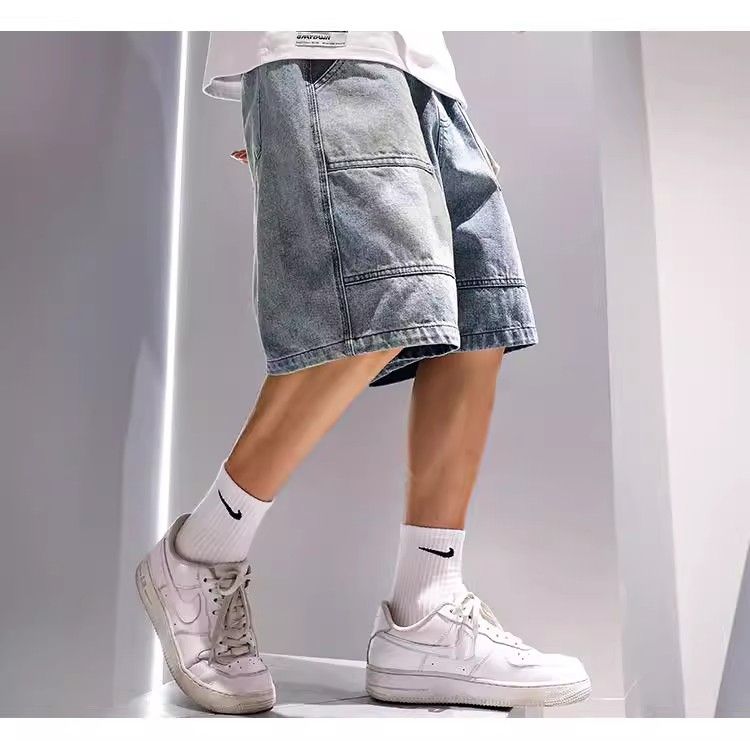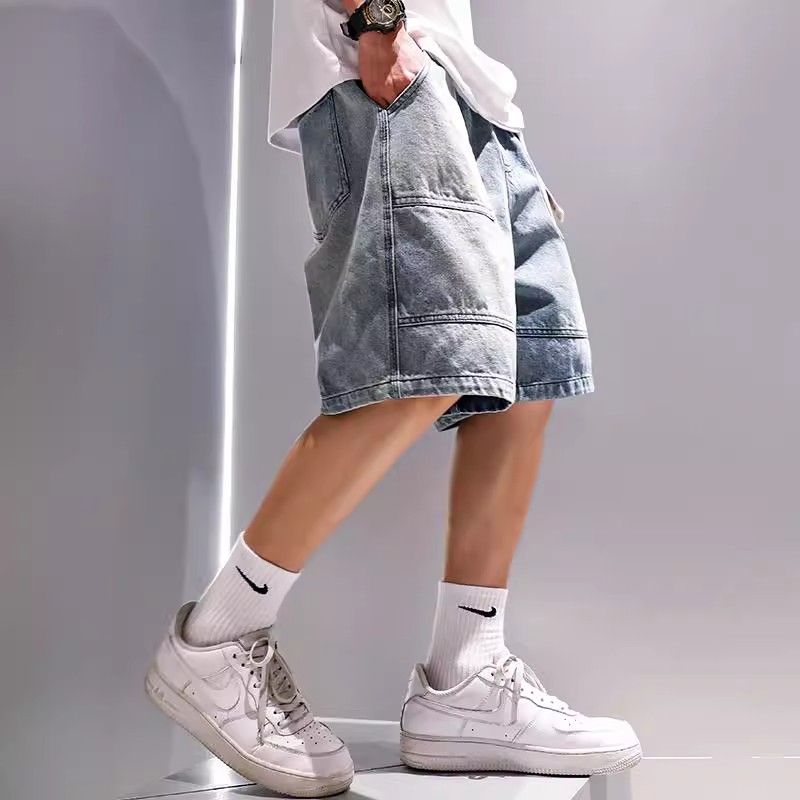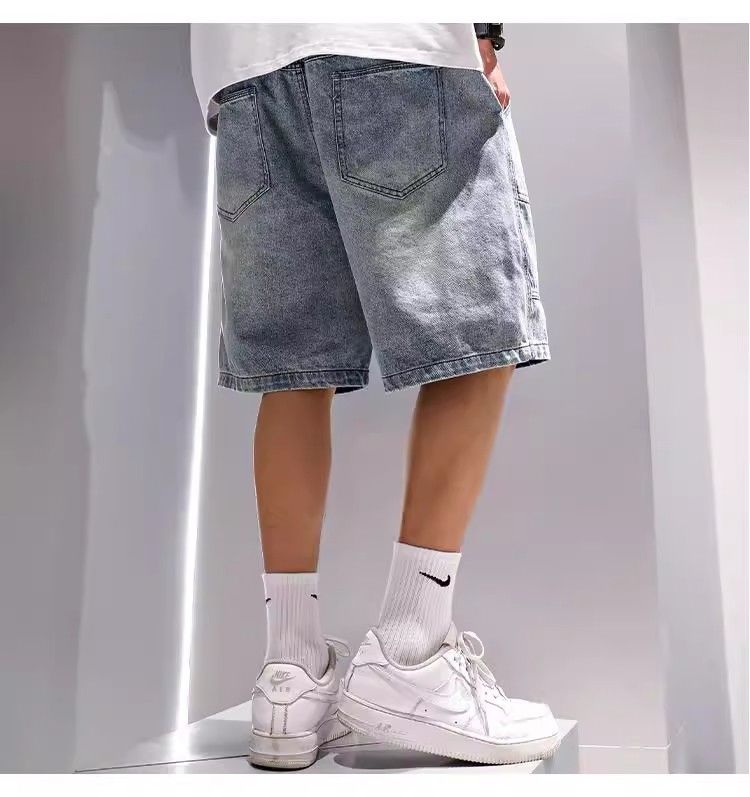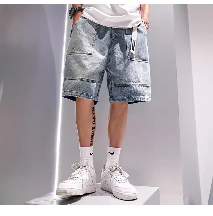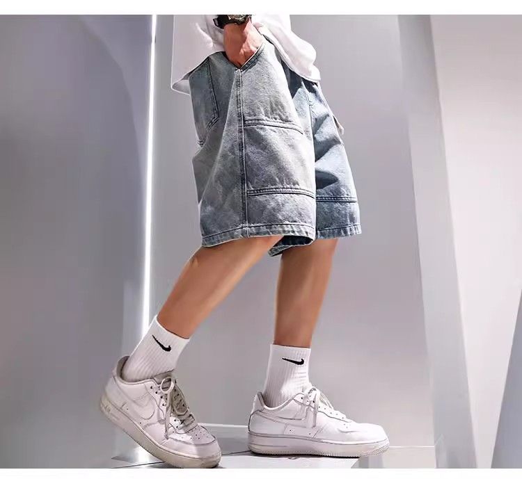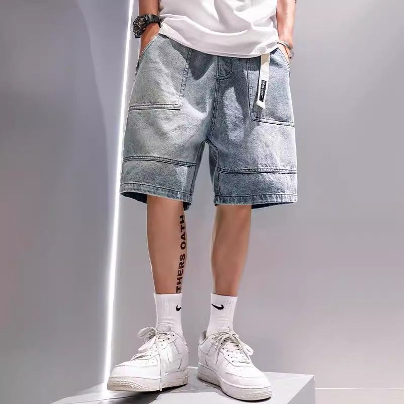 工裝寬鬆直筒簡約休閒五分牛仔短褲