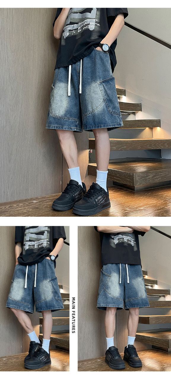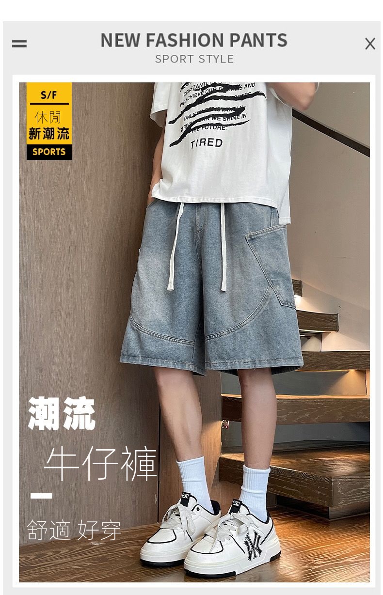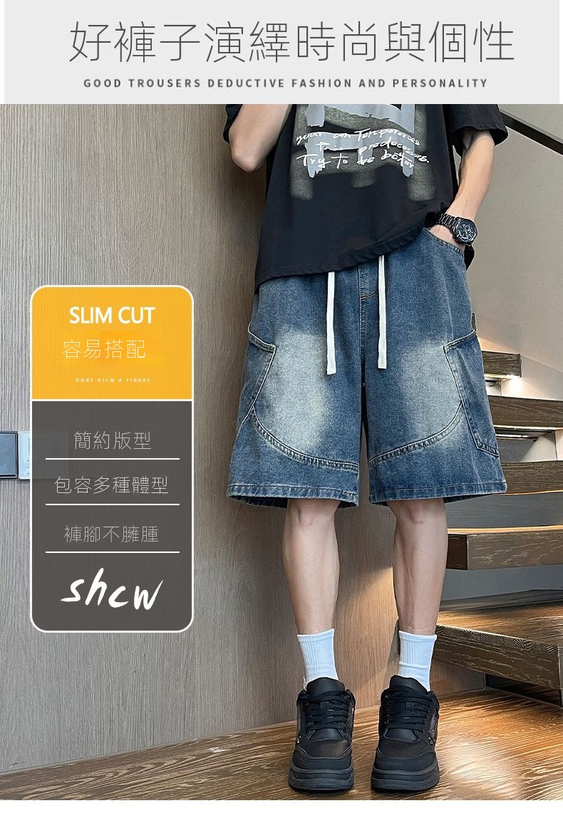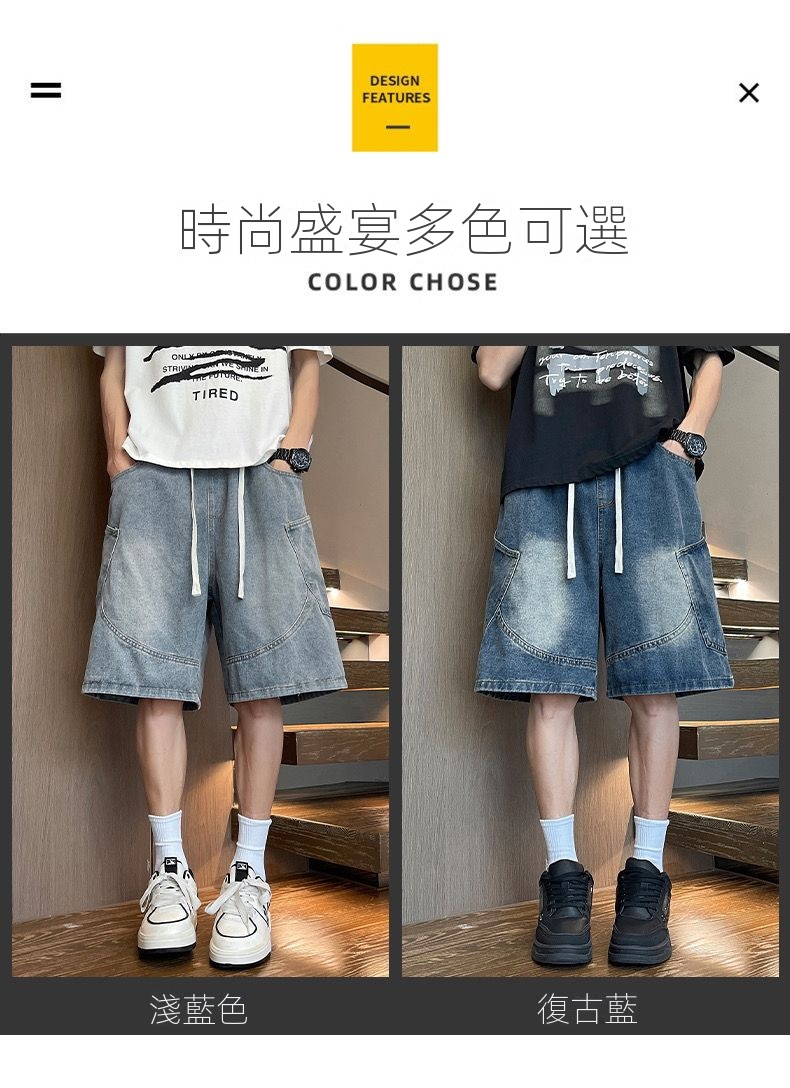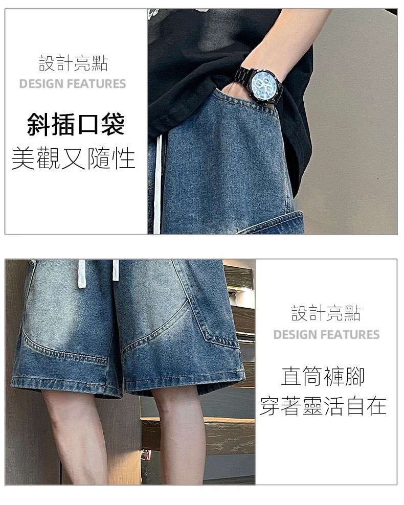 寬鬆百搭美式休閒直筒薄款五分牛仔短褲